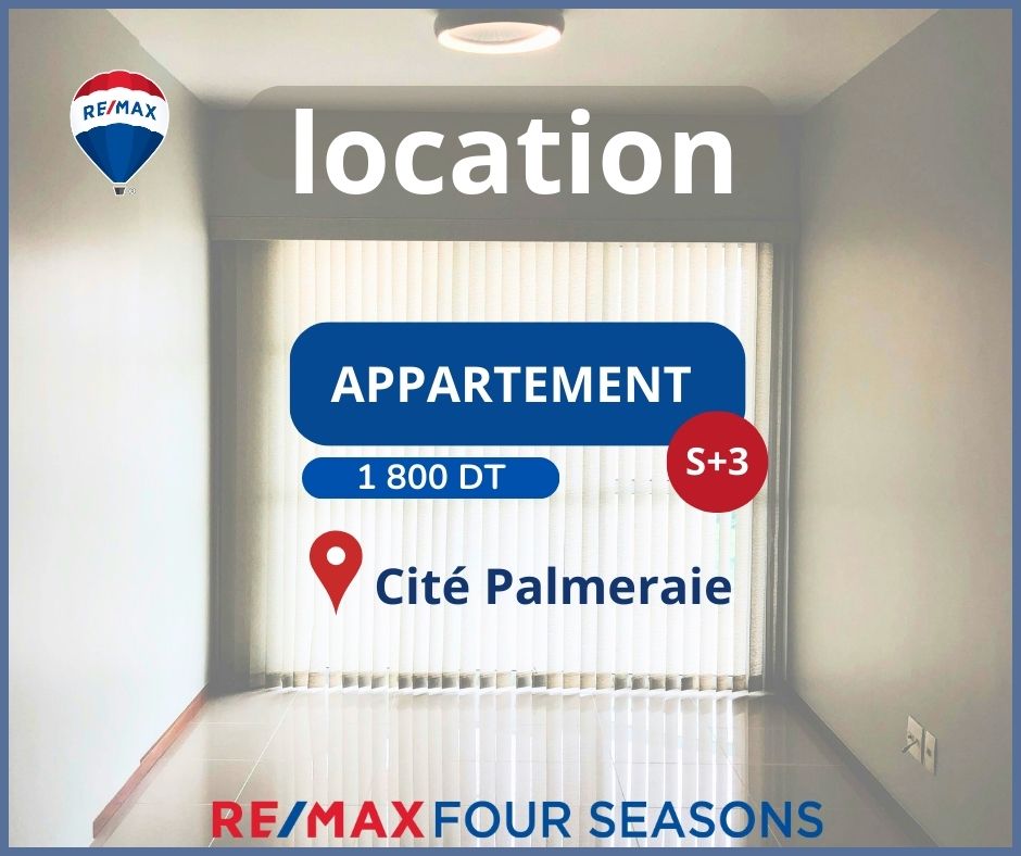 RE/MAX Four Seasons تقترح شقة رائعة S+3 meublé site au 1er étage d'une résidence sécurisée and bien entretenue à Cité Palmeraie.