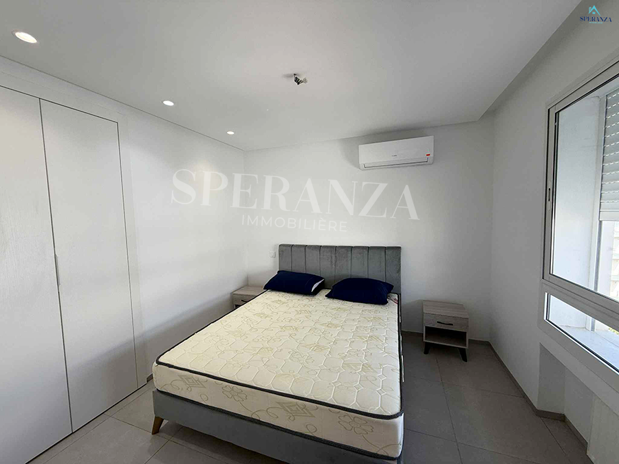 تقترح Speranza immobilière Hammamet موقعًا سنويًا في هذه الشقة المكونة من 5 غرف نوم مفروشة في الحمامات الشمالية وفي مكان إقامة آمن. الدخول إلى صالون مضيء ومطبخ صغير مجهز بعناصر إضافية وشرفة d'eau.Une chambre à الأريكة مع الضمادات والشرفة. Ainsi qu'une piscine الجماعية.