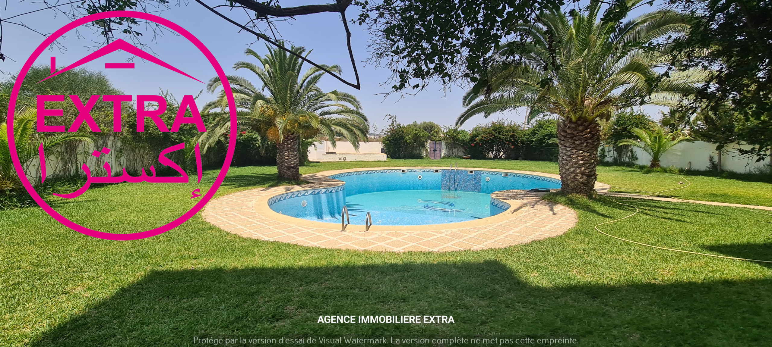 يحتوي على صالون، غرفتين على الأريكة لا "جناح الوالدين"، مطبخ مجهز، قاعة مياه، حديقة، وشرفة مفتوحة للمسبح.