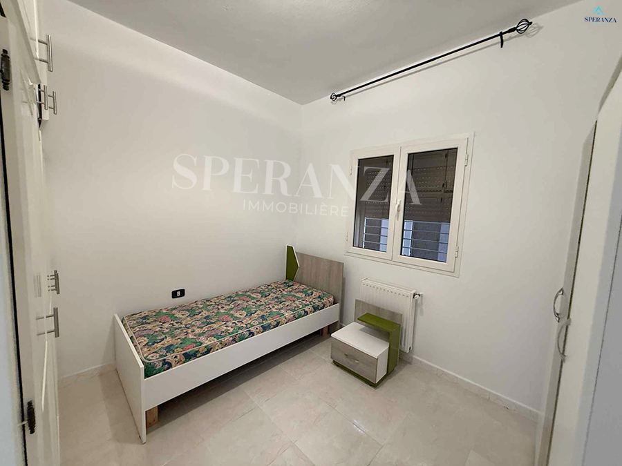 Speranza immobilière Hammamet vous propose à la location annuelle Cette villa RDC meublée qui se situe à Hammamet Nord elle se trouve dans un quartier résidentiel particulier et calme. L'entrée principale se compose par un salon lumineux, salle d'eau. La cuisine agence est aménagée par les éléments de rangement nécessaires ,trois chambres à coucher et une suite parentale ,salle de bain .et un garage .