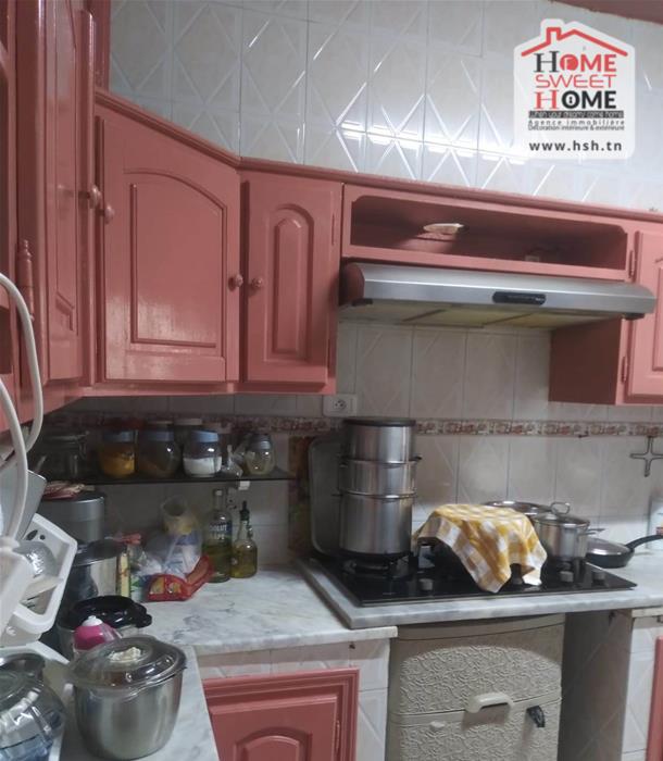 Appart S3 d'une superficie de 108m², situé au RDC d'une résidence à Cité El Amal Manouba. Il comprend un salon, une cuisine, 3 chambres et une salle de bain.