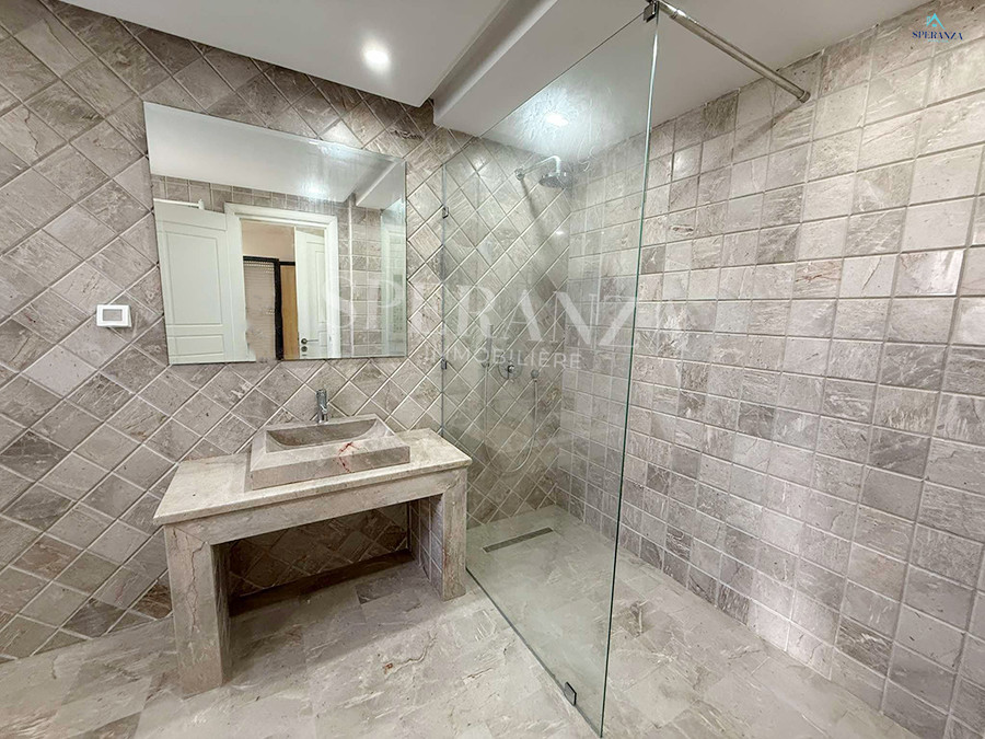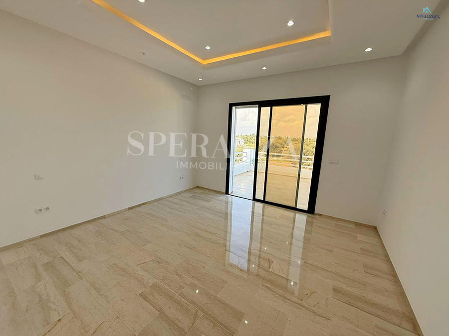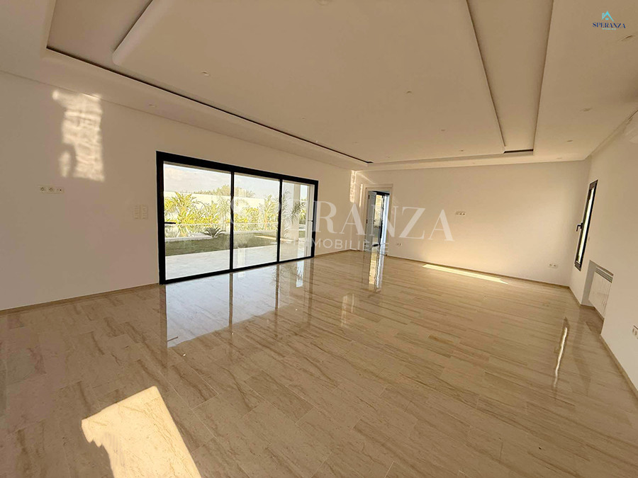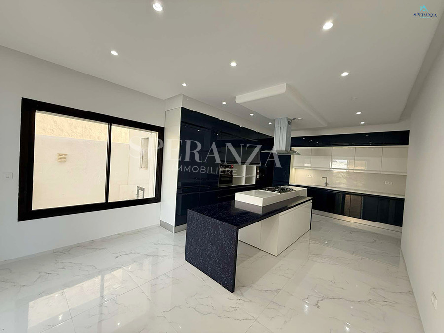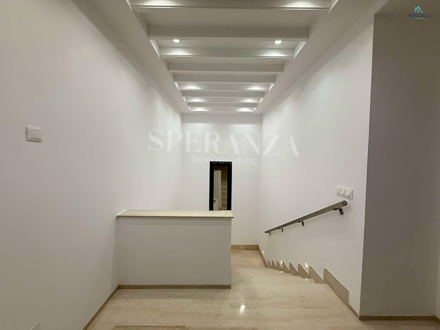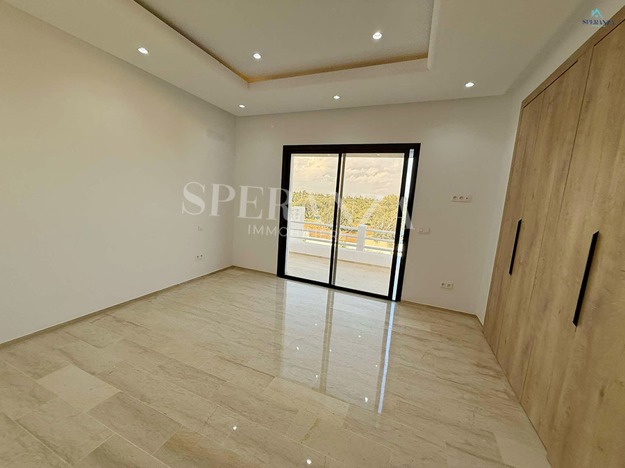 Speranza immobilière Hammamet vous propose à la vente Cette villa est située à Hammamet Sud. L'entrée bénéficie d'un jardin gazonné avec une piscine. La partie jour est composée principalement d'un salon lumineux grâce à ses fenêtres qui offrent une vue sur le jardin ,salon séjour, une cuisine dispose de plusieurs éléments de rangement ,une salle d'eau pour les invités,une suite parentale . Un escalier nous mène au 1er étage à la partie nuit qui se compose de trois suites parentales avec terrasse qui offre une vue sur le jardin et piscine ,et un garage .
