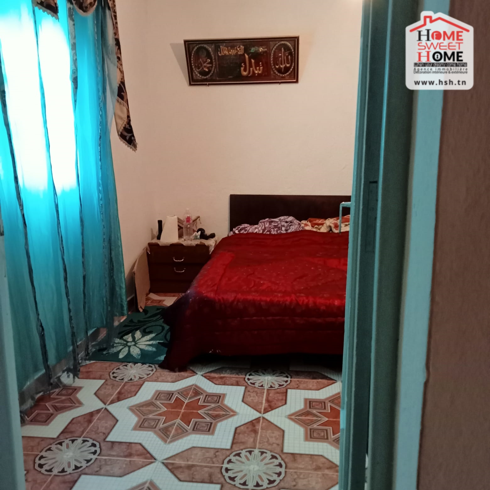 Une villa plein pied sur un terrain de 150 m² située dans un bon quartier à Cité Awled Moussa, Kef. A L'entrée, Sur un salon, une cuisine, 3 chambres, une salle de bain et un garage.