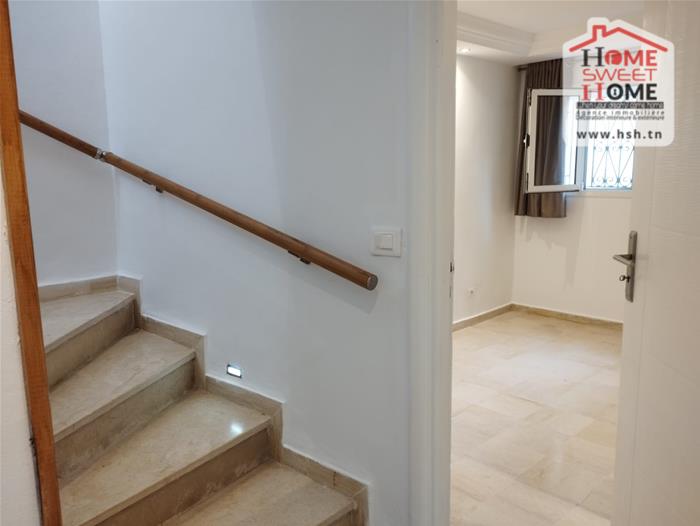 دوبلكس يقع في حي سكني هادئ وبحثي في قرطاج أميلكار. يتكون RDC من صالون وإقامة وغرفة وغرفة ومطبخ وغرفة مياه وشرفة. يحتوي المنزل الأول على غرفتين وصاله مياه وشرفة جميلة.