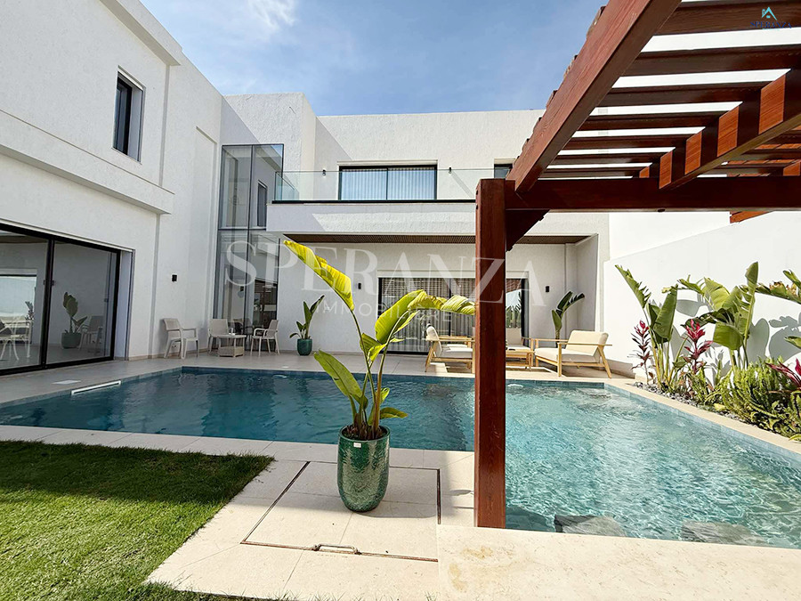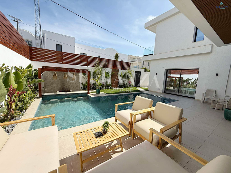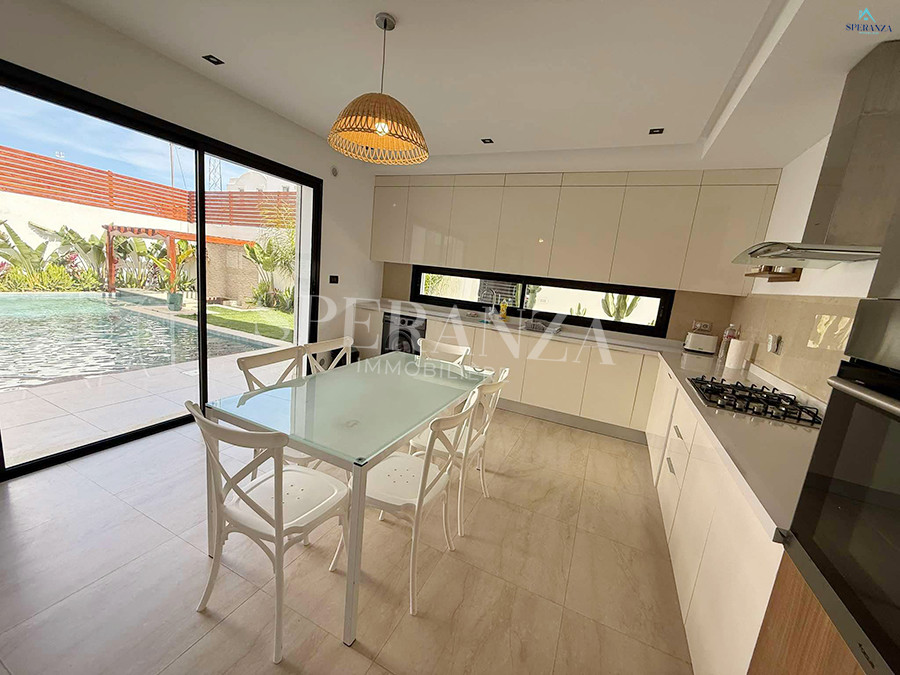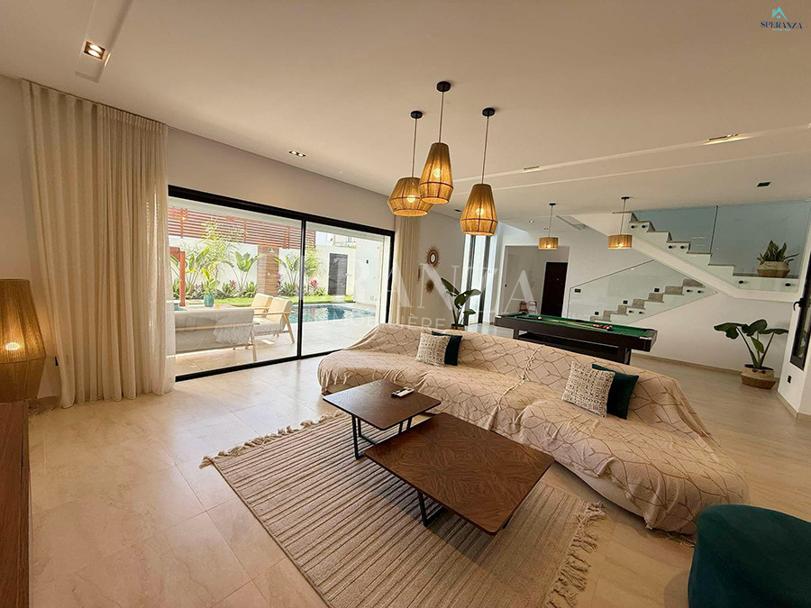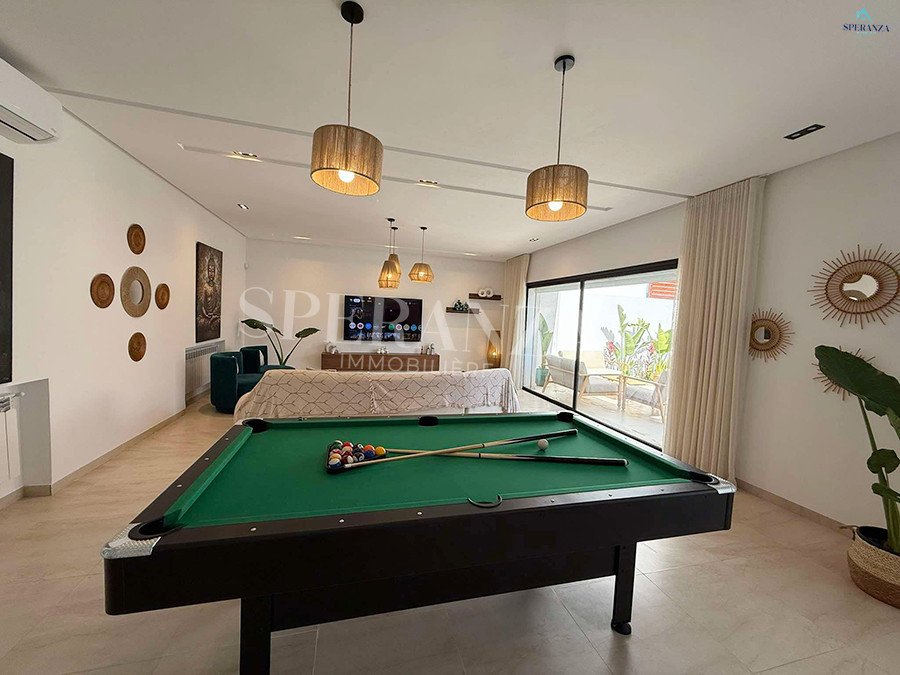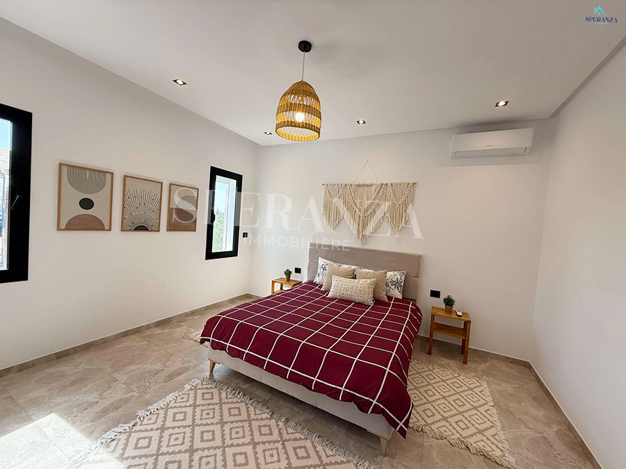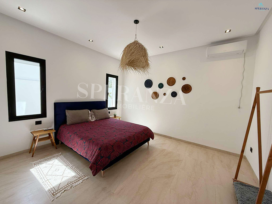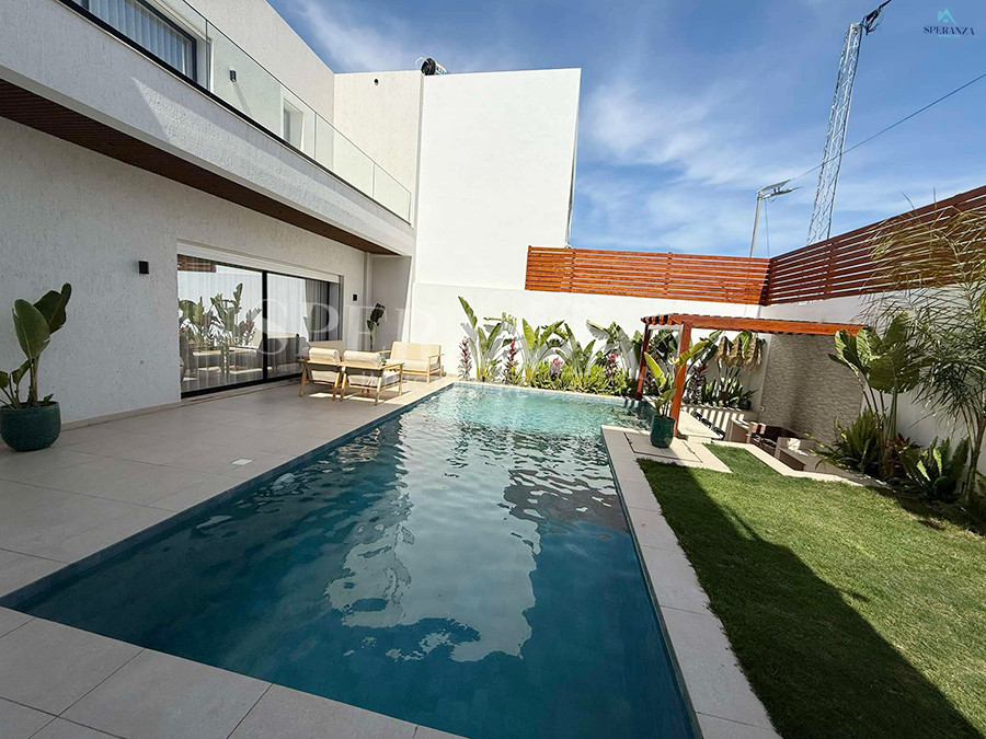 تقدم لك Speranza immobilière Hammamet موقعًا شاغرًا في هذه الفيلا الواقعة في مركز الحمامات. تستفيد من حديقة غازية مع مسبح. L'entrée donne sur un salon space .La Kitchen est aménagée par les élements de rangements، une salle d'eau، une chambre .Le 1ér étage contient trois suites parales، وun terrasse. مرآب عينسي قون.