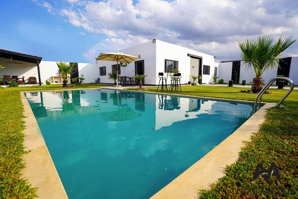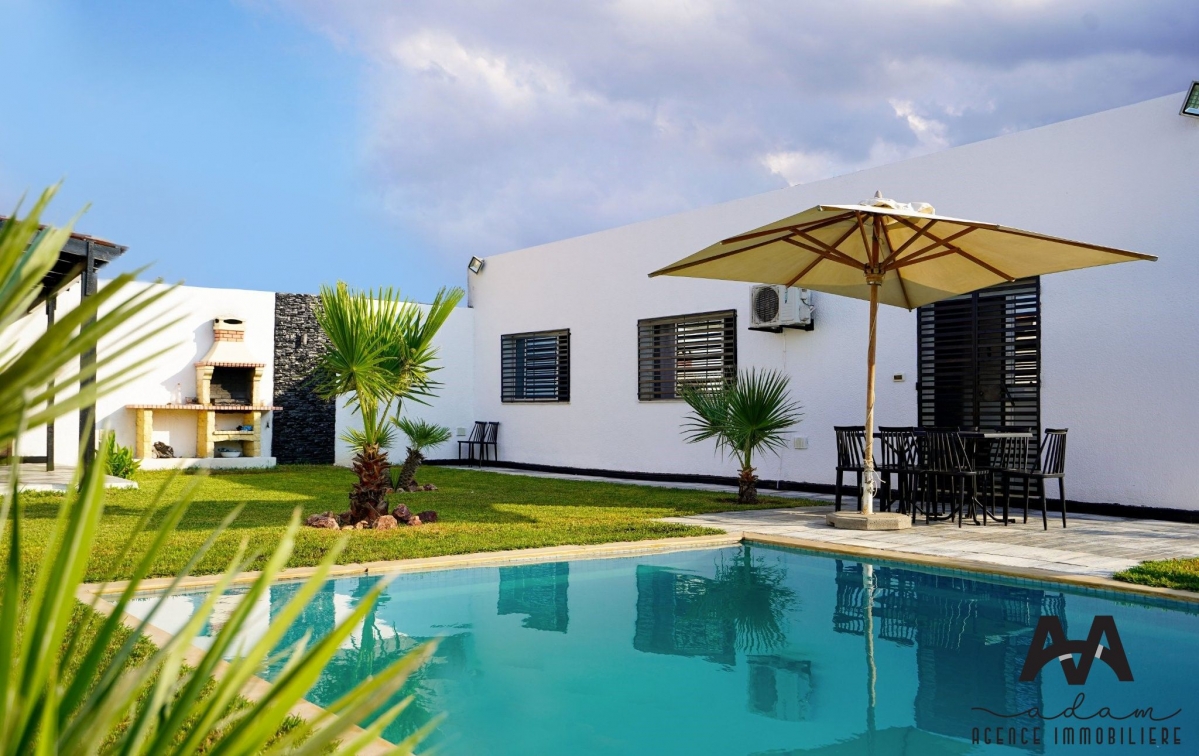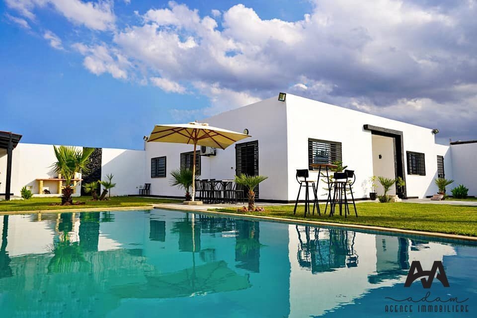 فيلا جميلة مستقلة في المهذبة، نابل بمساحة 1000 متر مربع مع حديقة ومسبح.