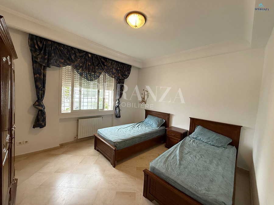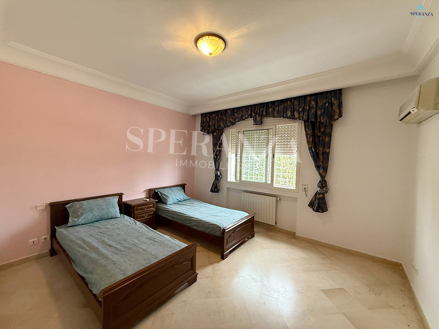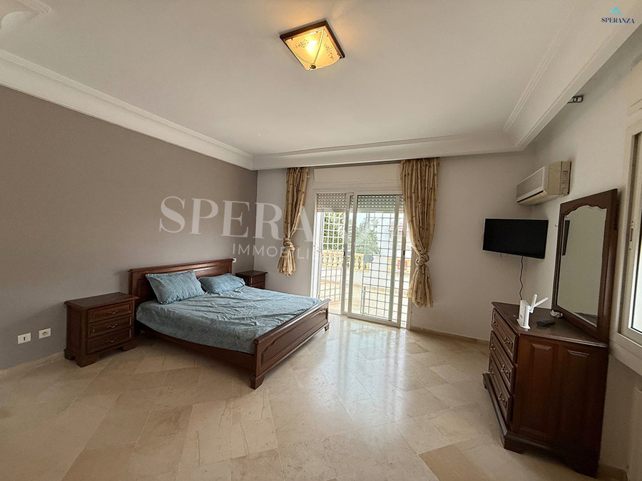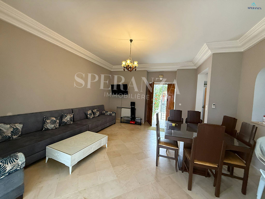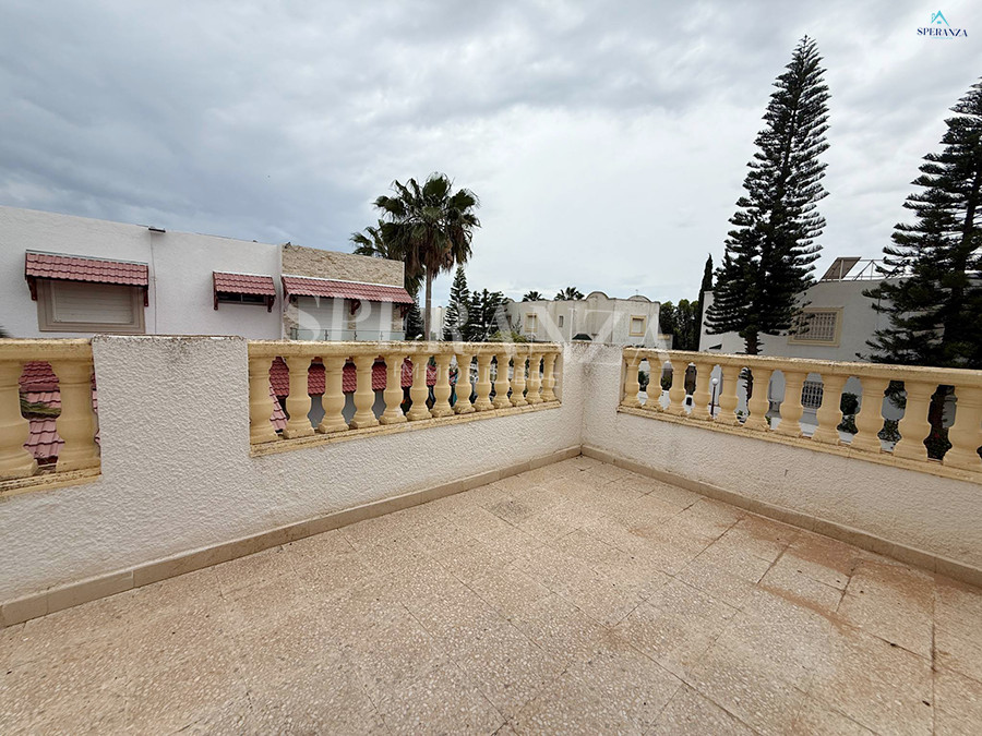 Speranza immobilière Hammamet vous المقترحة à la location vacances Cette Villa se situé à Hammamet sud (ياسمين الحمامات). L'entrée bénéficie d'un jardin gazonné . يجد Au Rez de Chausser صالونًا واسعًا، ومطبخًا يحتوي على العديد من عناصر المنزل، وغرفة، وغرفة مياه. المصعد الجديد Mène Vers 1 هو الجزء الذي يتكون من ثلاث غرف، وغرفة مياه. Ainsi qu'une Terrasse.