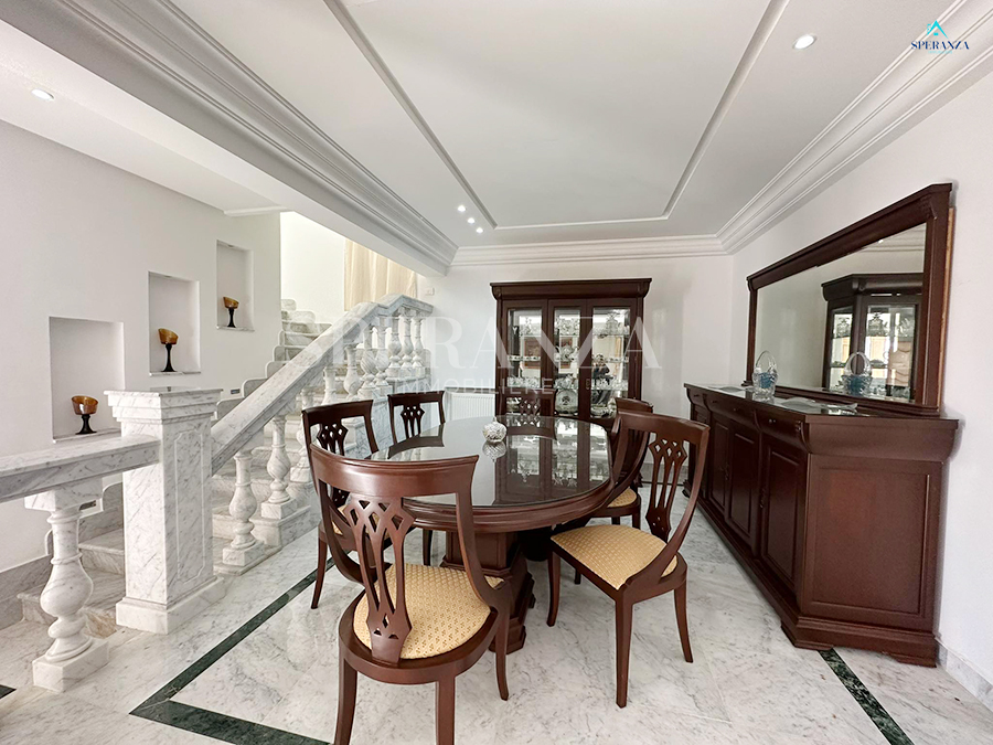 تقترح شركة Speranza immobilière الإقامة في الموقع السنوي لهذه الفيلا الواقعة في مركز الحمامات. المدخل الرئيسي هو حديقة غازية توفر مساحات إضافية ومسبحًا. ستجد Au rez de chausser صالونًا مضيءًا رائعًا على نوافذها يوفر رؤية على الحديقة، ومطبخًا متناغمًا مع مساحات من المساحة، وغرفة مياه للمدعوين، وغرفة صغيرة للسيدات. سلم جديد للطابق الأول هو عبارة عن غرفة مكونة من أربعة أجنحة أبوية مع تراس يوفر إطلالة على المسبح وغرفة المياه ومطبخ صغير. مطبخ في الخارج ومرآب للسيارة.(ملاحظة: غير قابل للتركيب)
