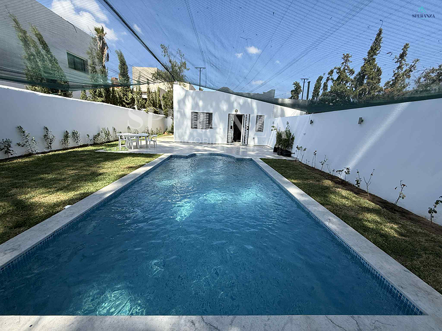 تقترح Speranza immobilière Hammamet موقعًا سنويًا في Cette Villa RDC meublés التي تقع في مركز الحمامات، وتقع في حي سكني خاص وهادئ وعلى بعد 3 دقائق من الشاطئ. المدخل الرئيسي مفيد لحديقة واسعة ومطعم، الجزء اليومي يتكون من صالون مضيء، قاعة مياه، وكالة مطبخ مُنسقة من خلال عناصر النطاق الضرورية. تحتوي الحجرة على غرفتي نوم على الأريكة.ومكان لوقوف السيارات.