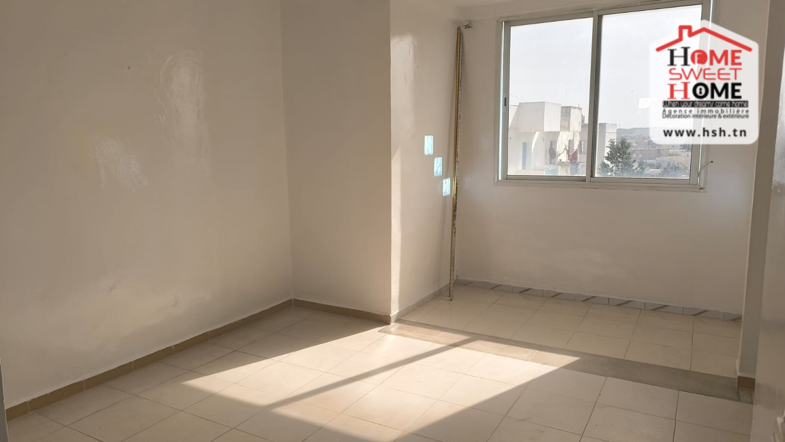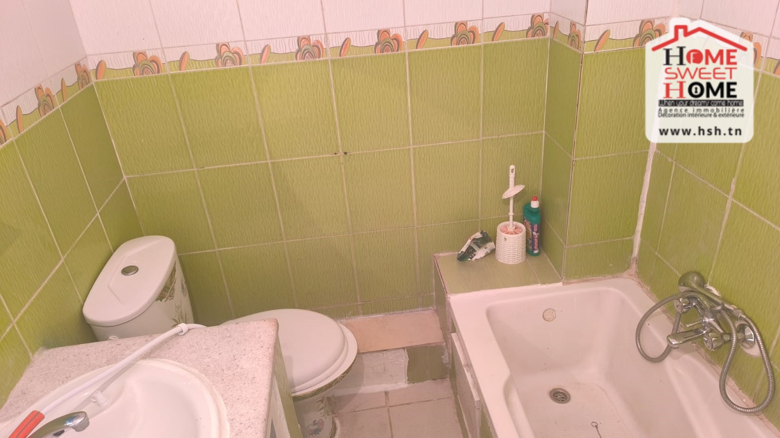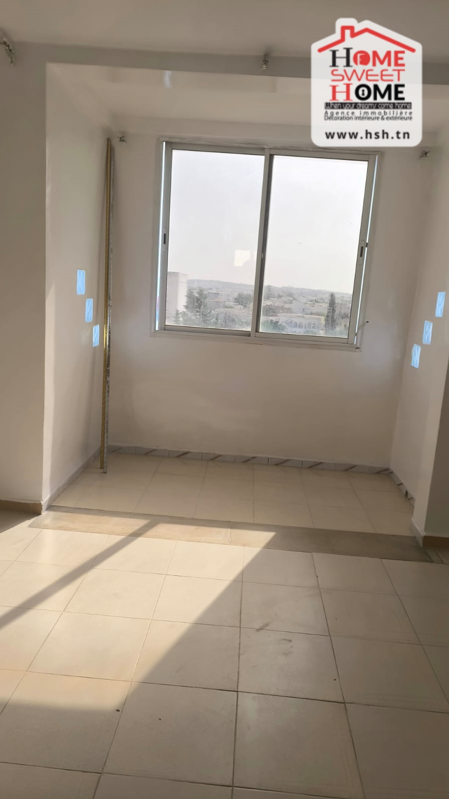 شقة S2 في منطقة 4éme étage في موقع إقامة في حي سكني في بن عروس. في المدخل، ستجد صالونًا ومطبخًا وغرفتين وغرفة حمام.