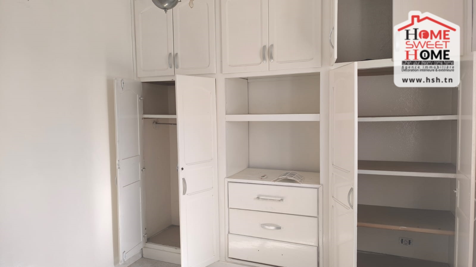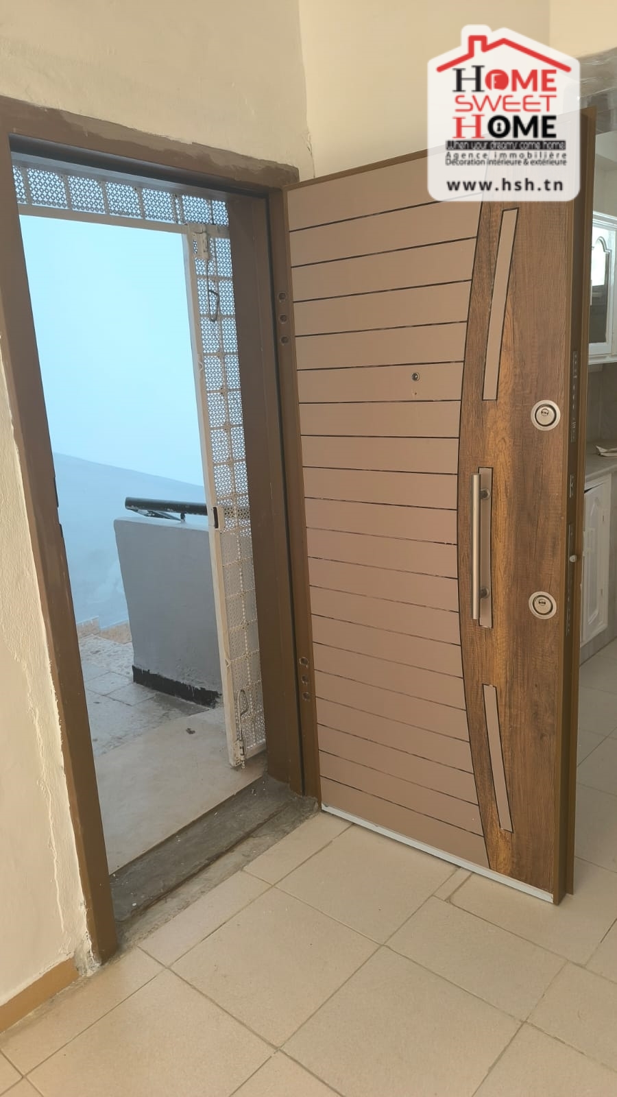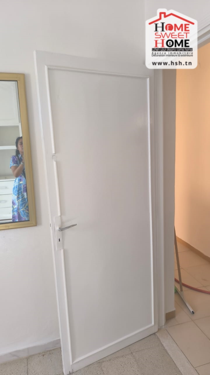 شقة S2 في منطقة 4éme étage في موقع إقامة في حي سكني في بن عروس. في المدخل، ستجد صالونًا ومطبخًا وغرفتين وغرفة حمام.