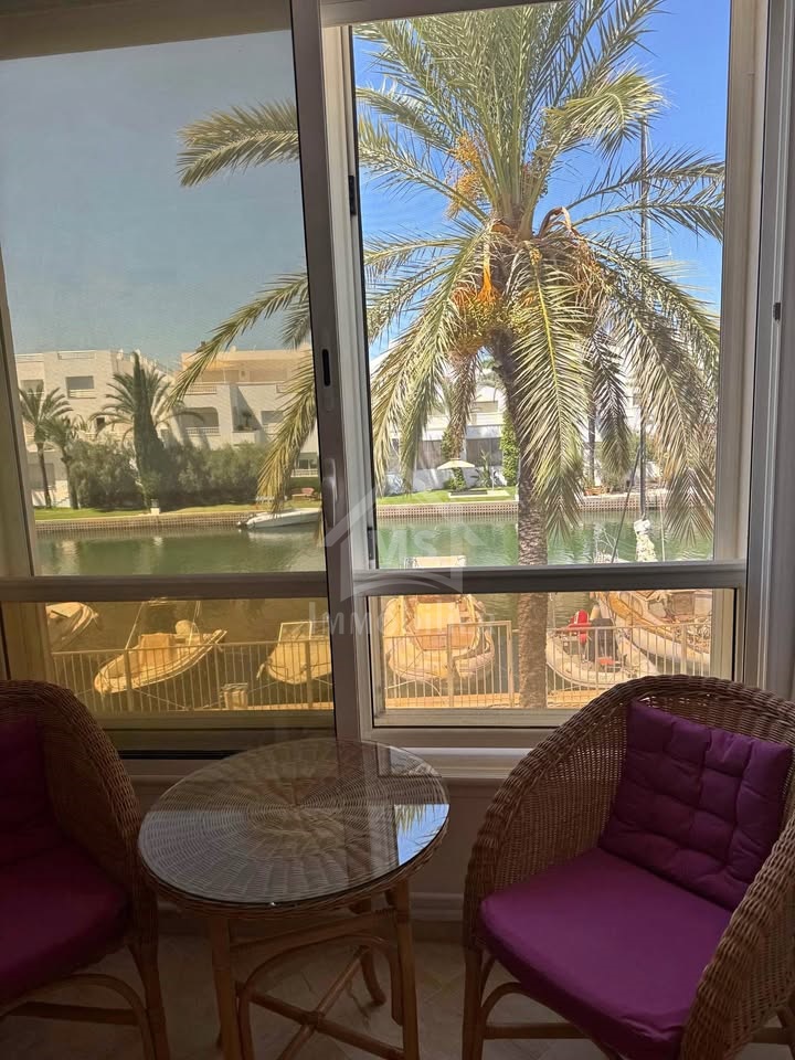 MS_IMMOBILIER يبيع شقة فسيحة S+2 تقع في مكان إقامة محمي وآمن مع حوض سباحة مباشر على القناة المؤدية إلى ميناء مارينا الحمامات