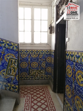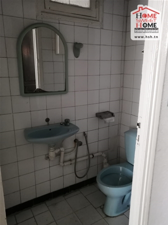 مكتب في الطابق الأول مع بوابتين للدخول يقعان في وسط مدينة تونس. مدخل وصالون ومطبخ صغير وغرفة مياه و4 غرف وصالة حمام