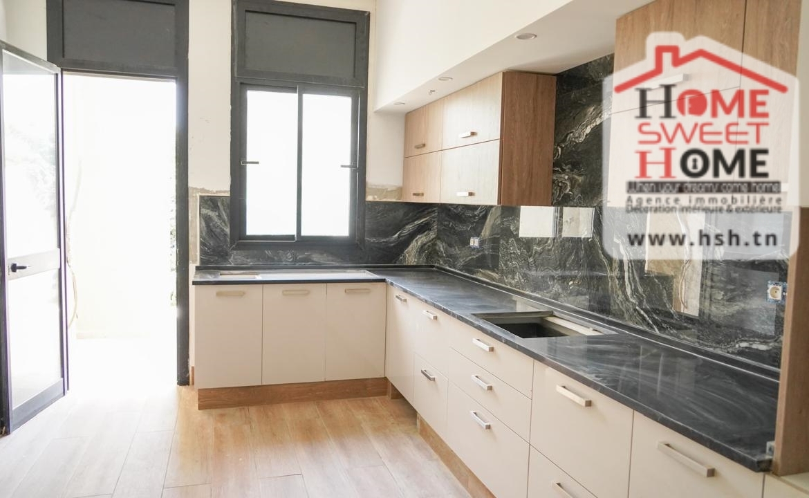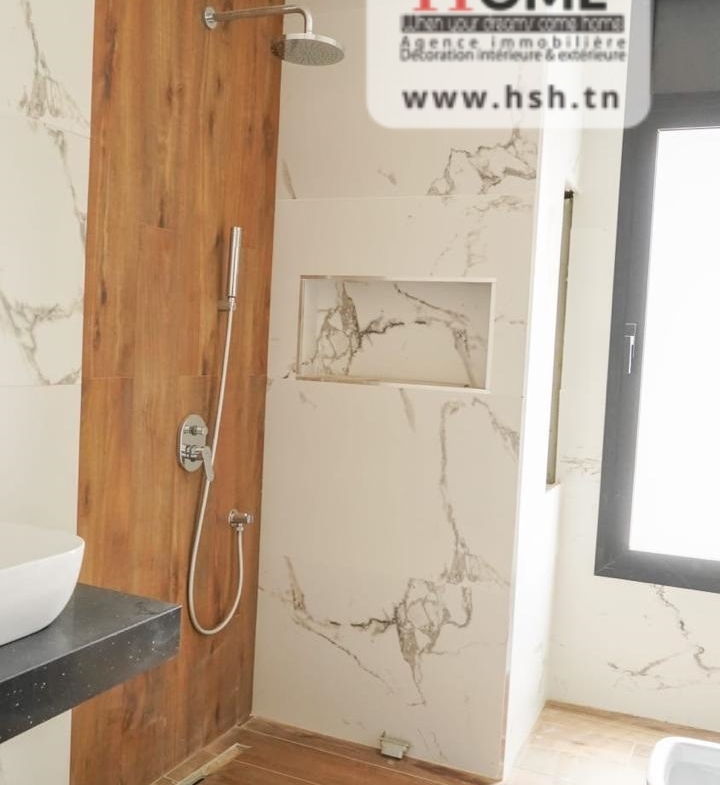 دوبلكس مع موقع سمكي في حي سكني ببحر الأزرق، المرسى. Au RDC، في صالون، وغرفة طعام، ومطبخ، وجناح الوالدين، وغرفة حمام. A l'étage على 3 أجنحة الوالدين.