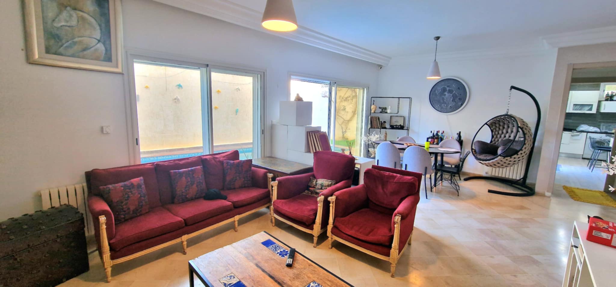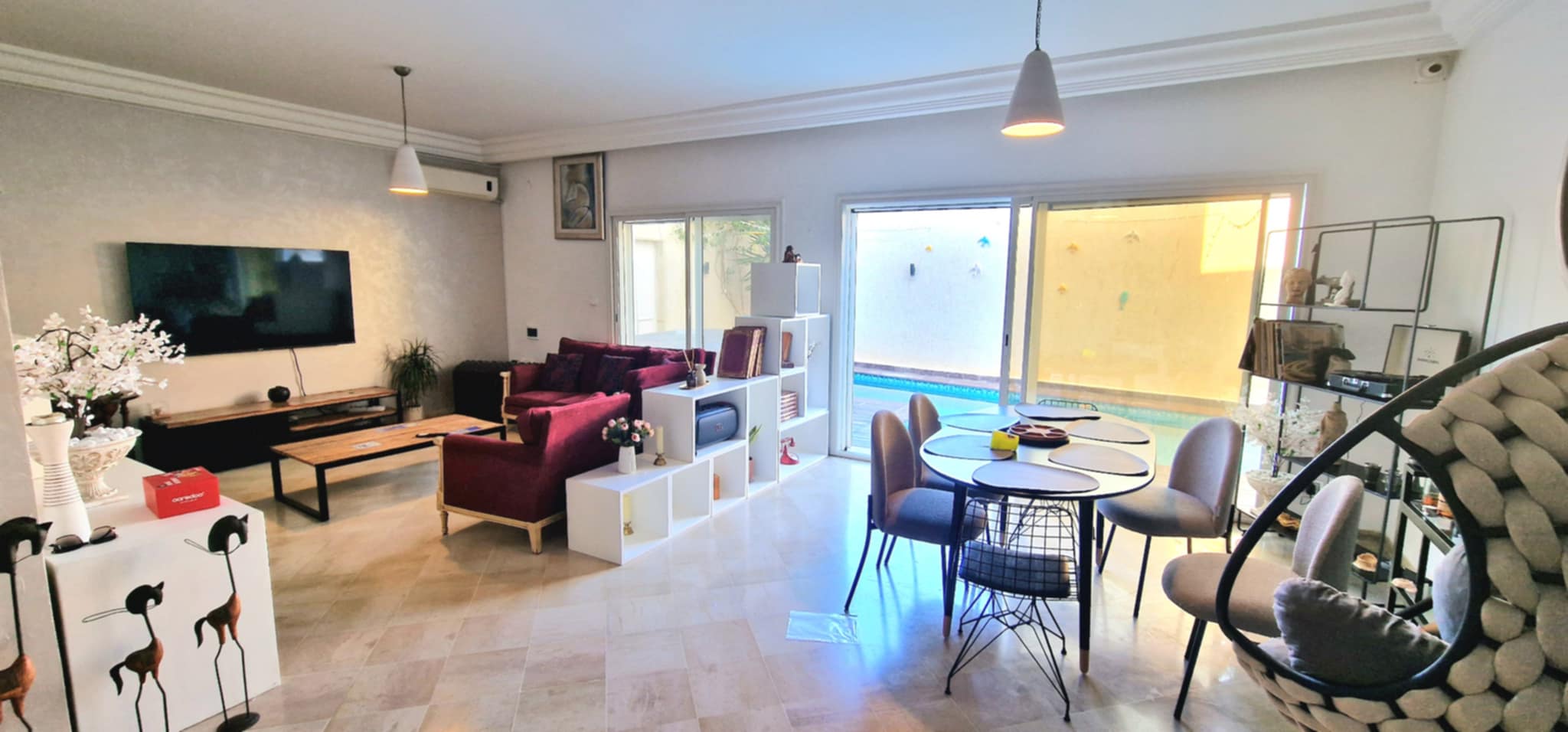 نقترح عليك بيع شقة دوبلكس في سكن هادئ بقرية قمرت. يقترح هذا الدوبلكس المعاد سطحًا صالحًا للسكن بمساحة 160 مترًا مربعًا على مستويين وحديقة بمساحة 50 مترًا مربعًا. وهو يؤلف : RDC :صالون، غرفة إدارة مفتوحة على المسبح، مطبخ غني بالتجهيزات، قاعة مياه مدعوة.