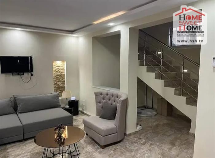 شقة على مساحة 430 مترًا مربعًا، تمتد على شارعين، تقع في بوشوشة. أنا أستوعب فيلا S3 على مستويين ودوبلكس S3 ومرآب.