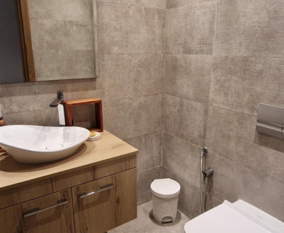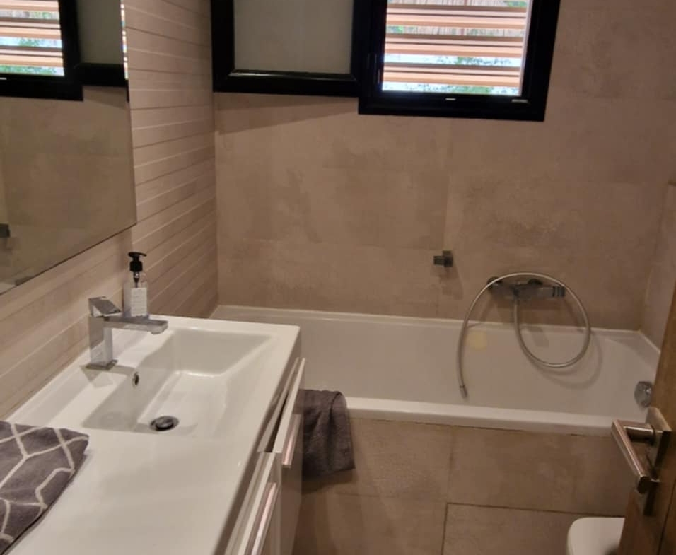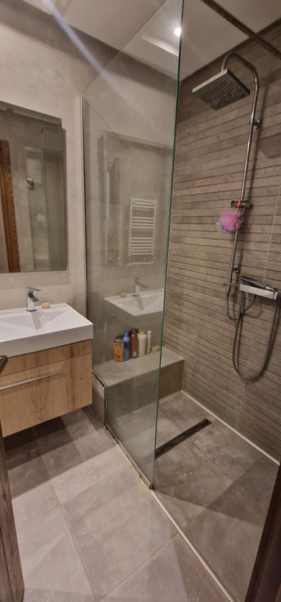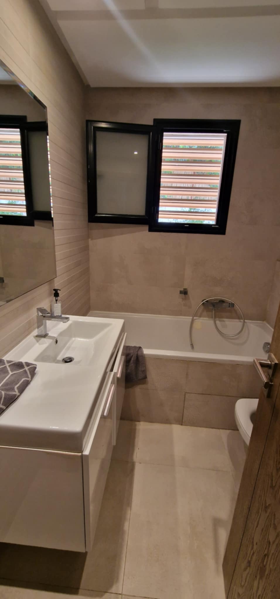 تم تجهيز صالة الحمام المشتركة L'appartement بالتدفئة المركزية والمناخ المقسم.