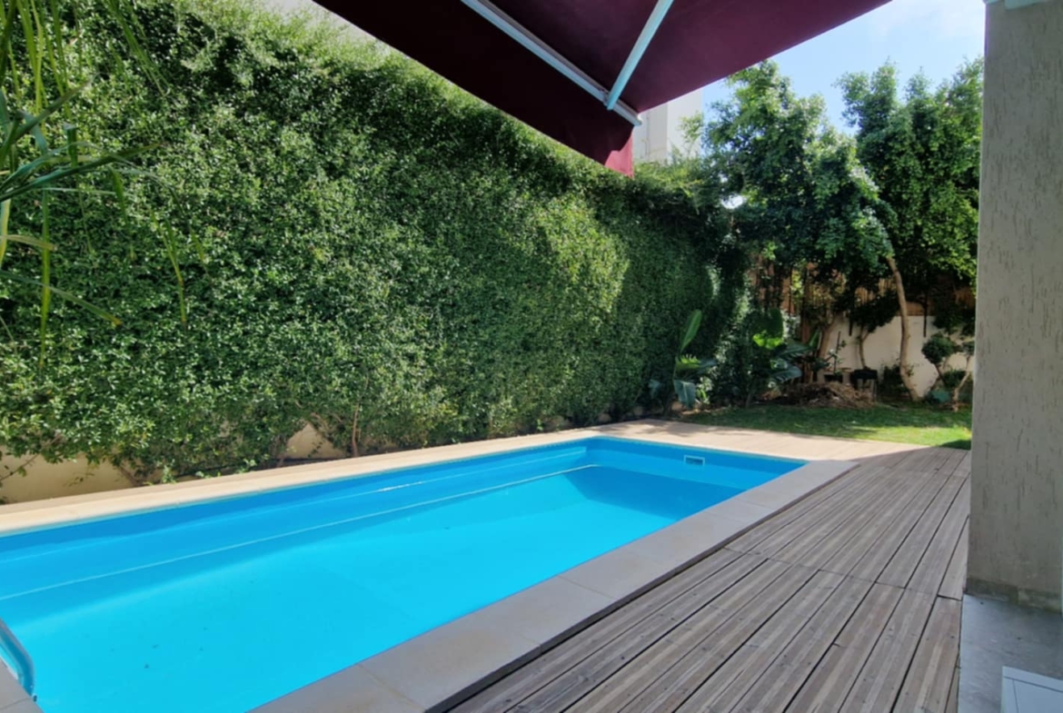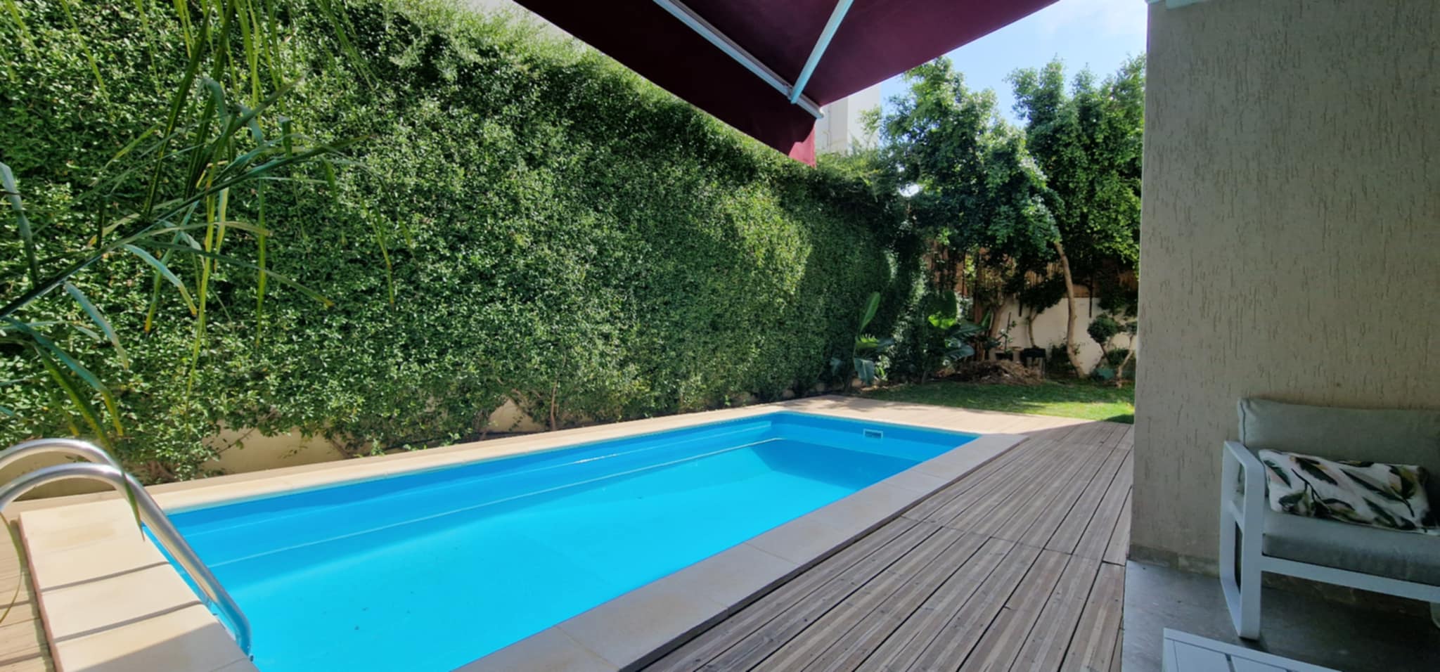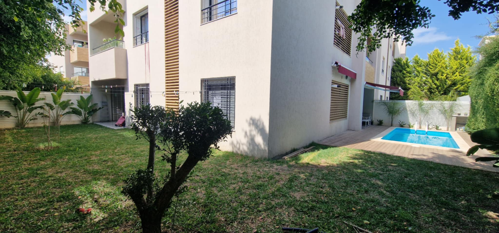 تقترح عليك شراء شقة S+3 بمساحة 180 مترًا مربعًا مع حديقة خارجية رائعة (حديقة + حوض سباحة) بمساحة 190 مترًا مربعًا في سكن R+2 مؤمن في #Chotrana1.