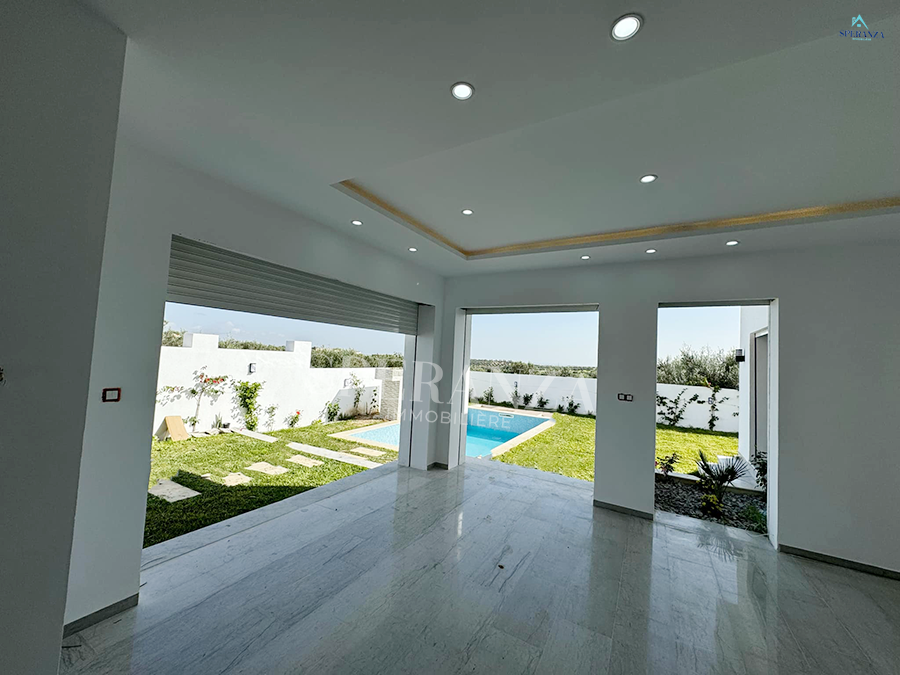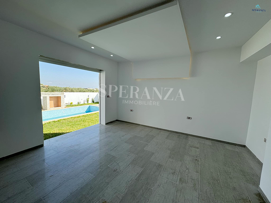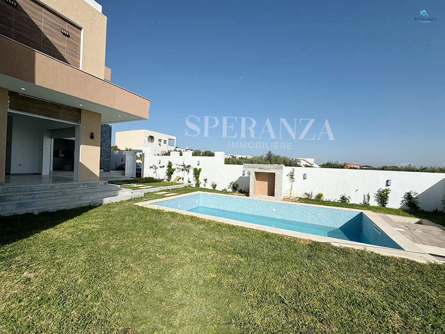 Speranza immobilière Hammamet تقترح عليك فيلا على الطراز الحديث تقع في الحمامات الجنوبية. يستفيد من دخول حديقة غازية مع سمكة. يتكون الجزء اليومي بشكل أساسي من صالون مضيء مع نوافذ توفر رؤية على الحديقة، ومطبخًا منسقًا بمساحات واسعة، وغرفة مياه للمدعوين، وغرفة للأريكة. من المفترض أن نصعد إلى المرحلة الأولى من حفلة الليلة التي تتكون من غرفتين على الأريكة، وغرفة مياه، وجناح الوالدين. مرآب غير .
