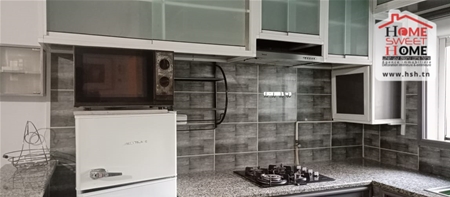 تقع الشقة S1 meublé au 1 في مكان غير مصعد في قرطاج سلامبو. A L'entrée، في مطبخ مفتوح في صالون وغرفة وغرفة حمام.