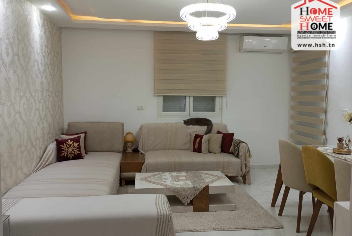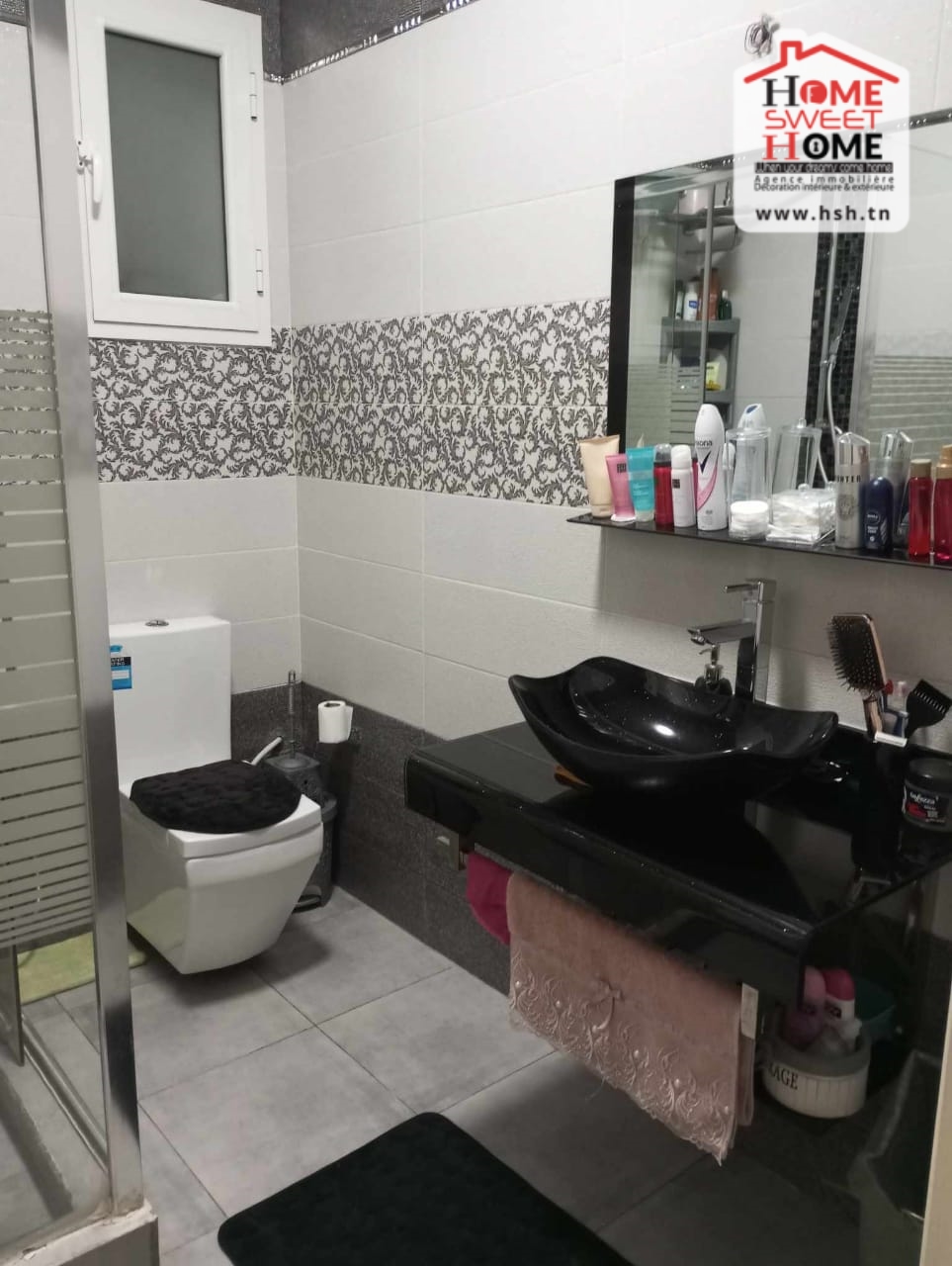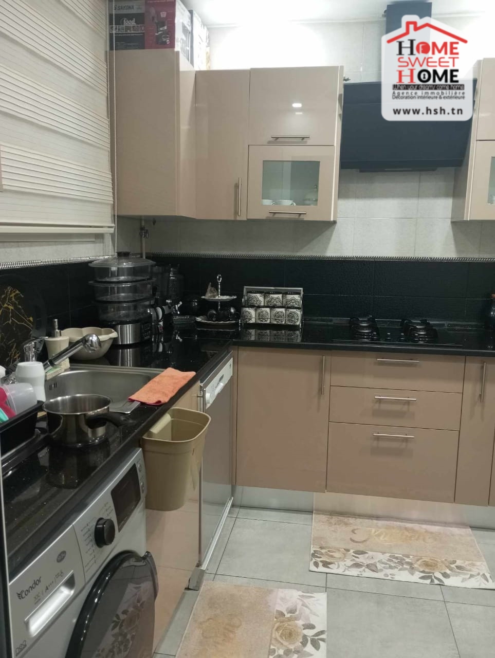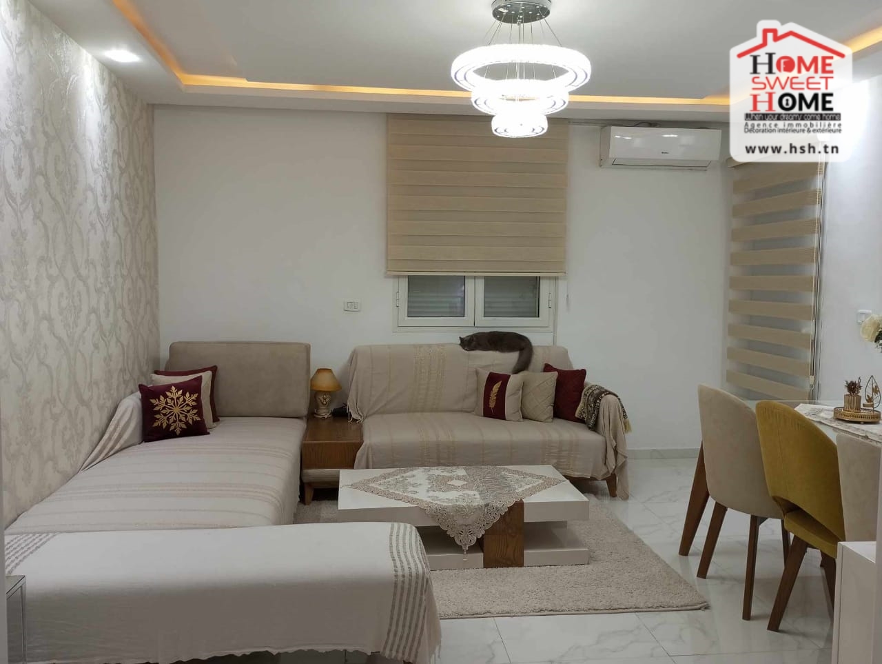 Un Appartement au 1ére étage situé dans un bon quartier à Mourouj1. في المدخل، هناك صالون، ومطبخ مع séchoir، وغرفتين، وغرفة حمام، وغرفة ماء. في الخارج، على الشرفة.