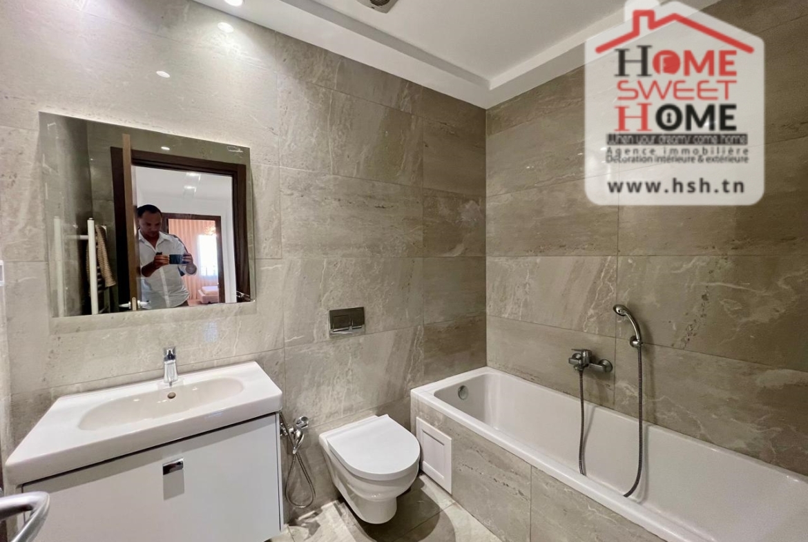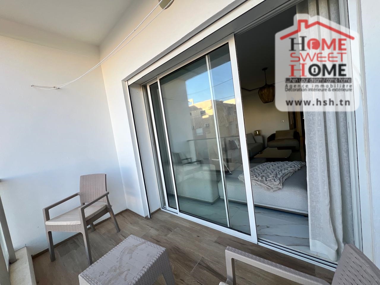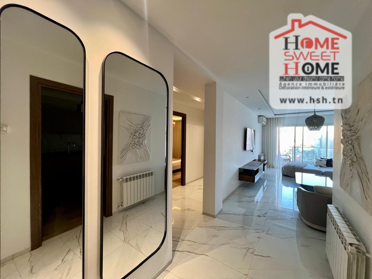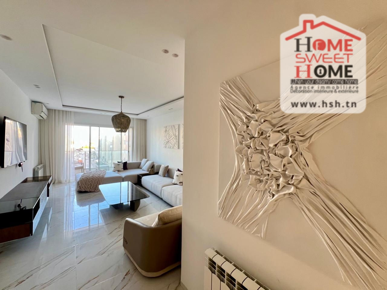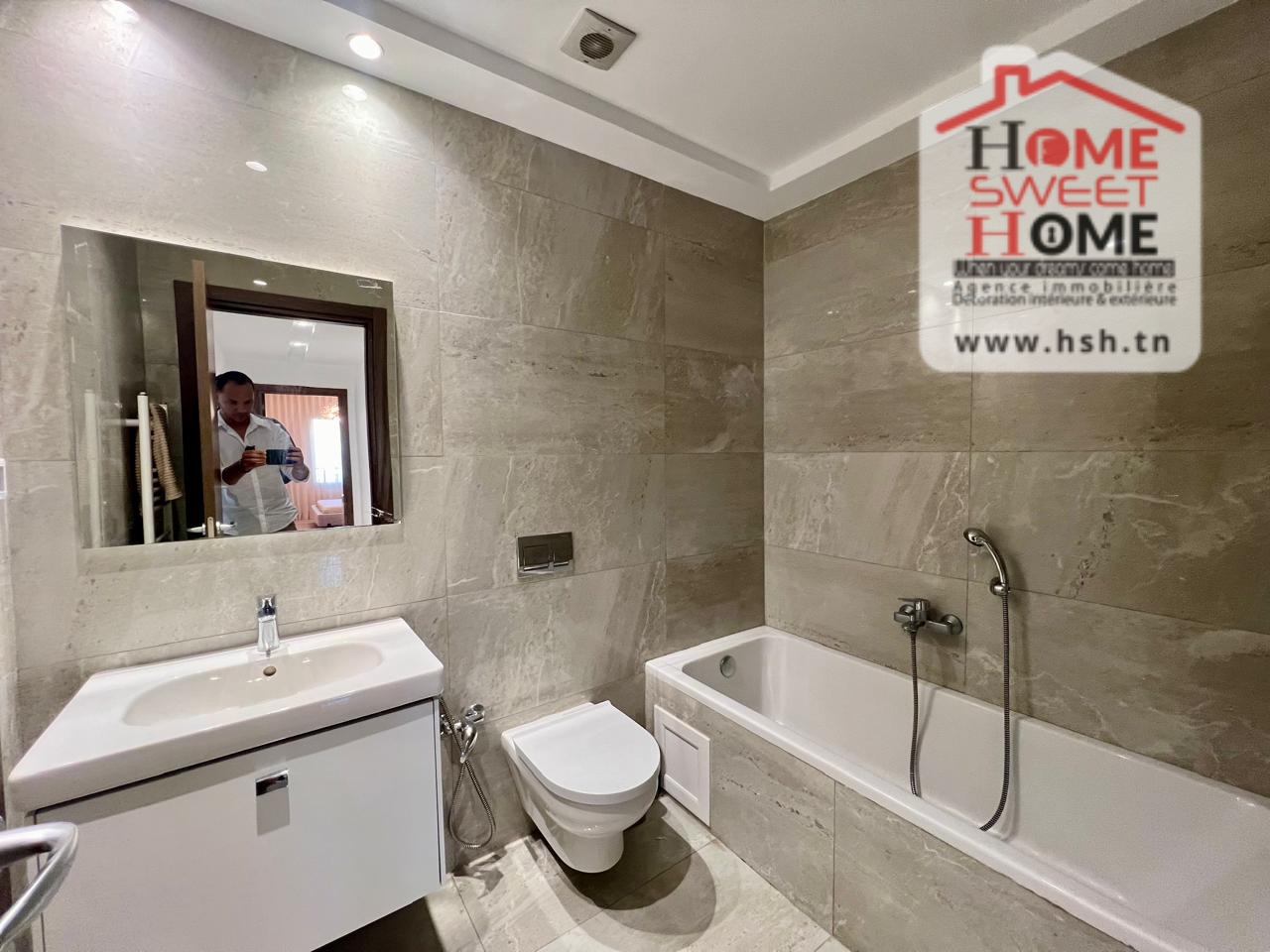 Un appart de très haut stand au 4ème étage site à Cité les palmeraies، L'Aouina. مدخل، على صالون مع شرفة، مطبخ مجهز، جناح الوالدين مع شرفة، غرفة أريكة وغرفة حمام.