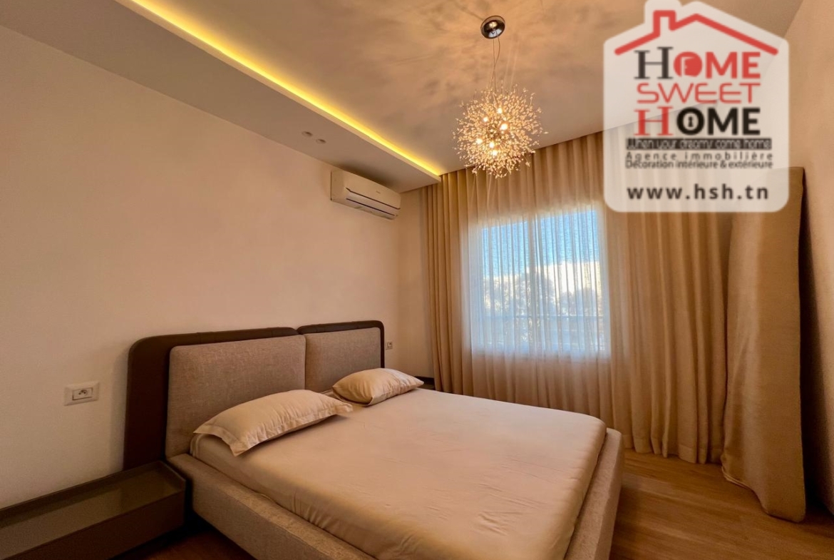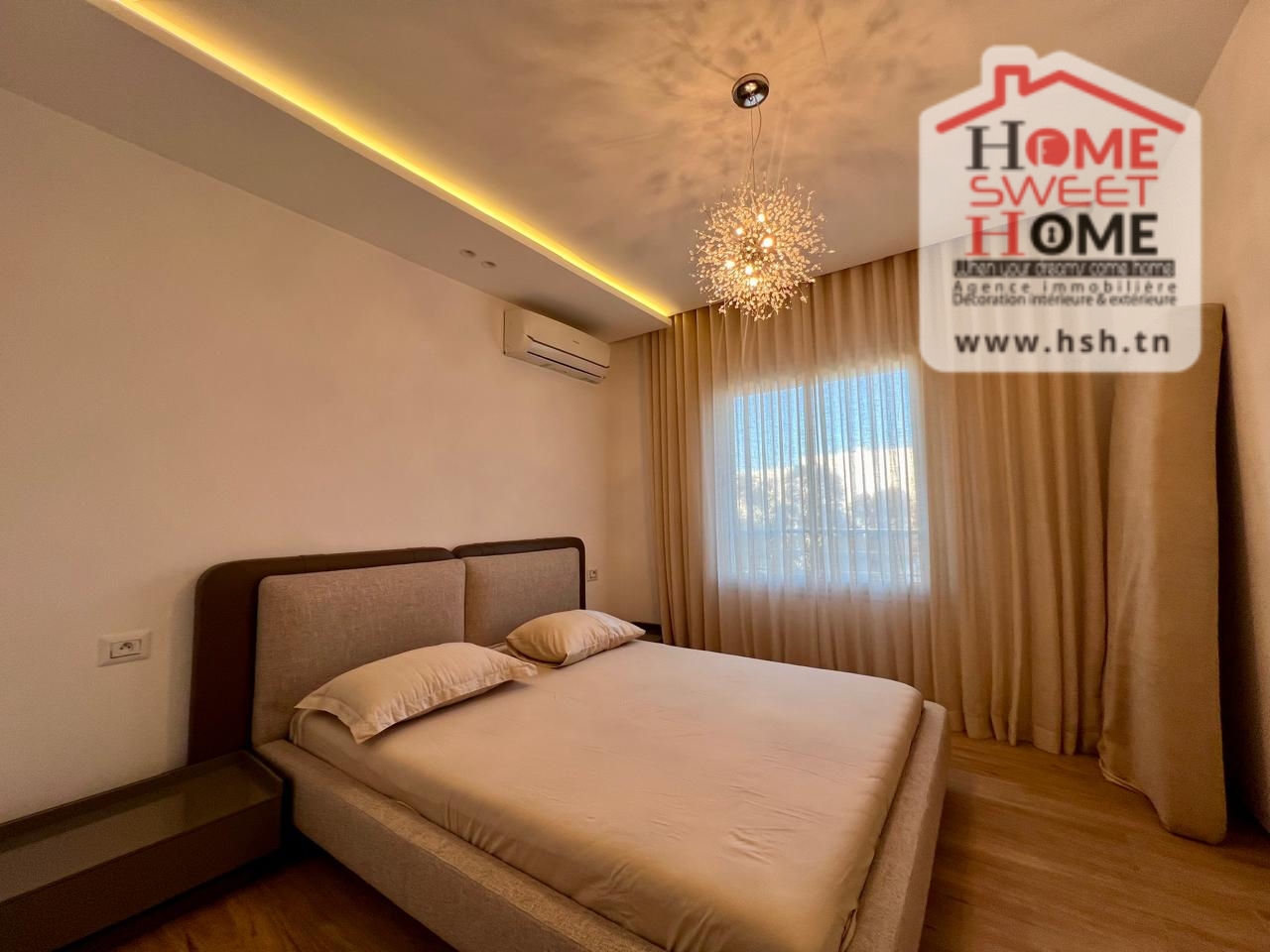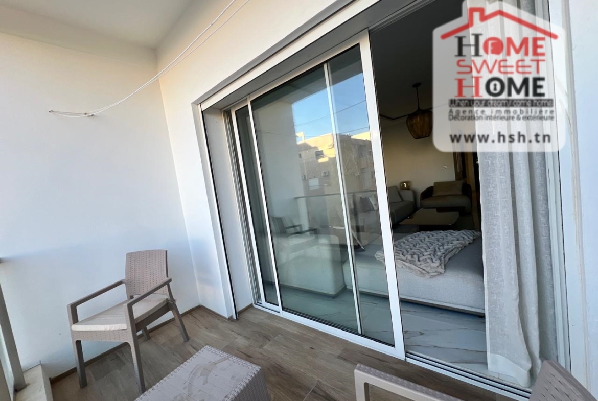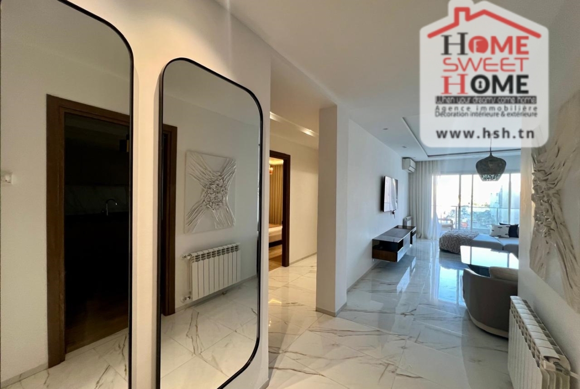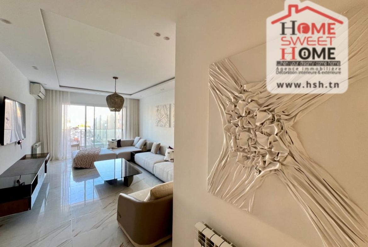 Un appart de très haut stand au 4ème étage site à Cité les palmeraies، L'Aouina. مدخل، على صالون مع شرفة، مطبخ مجهز، جناح الوالدين مع شرفة، غرفة أريكة وغرفة حمام.