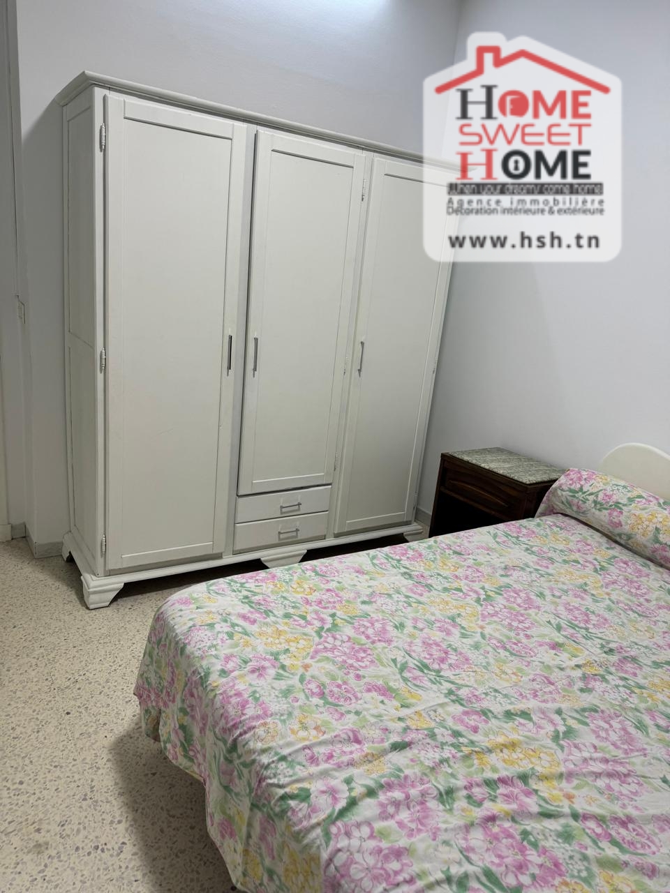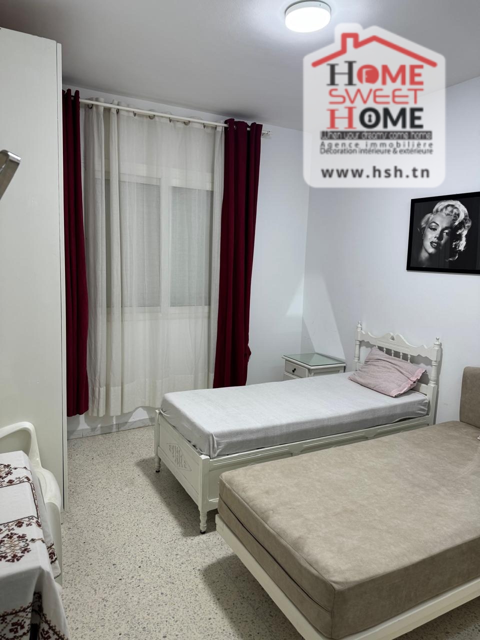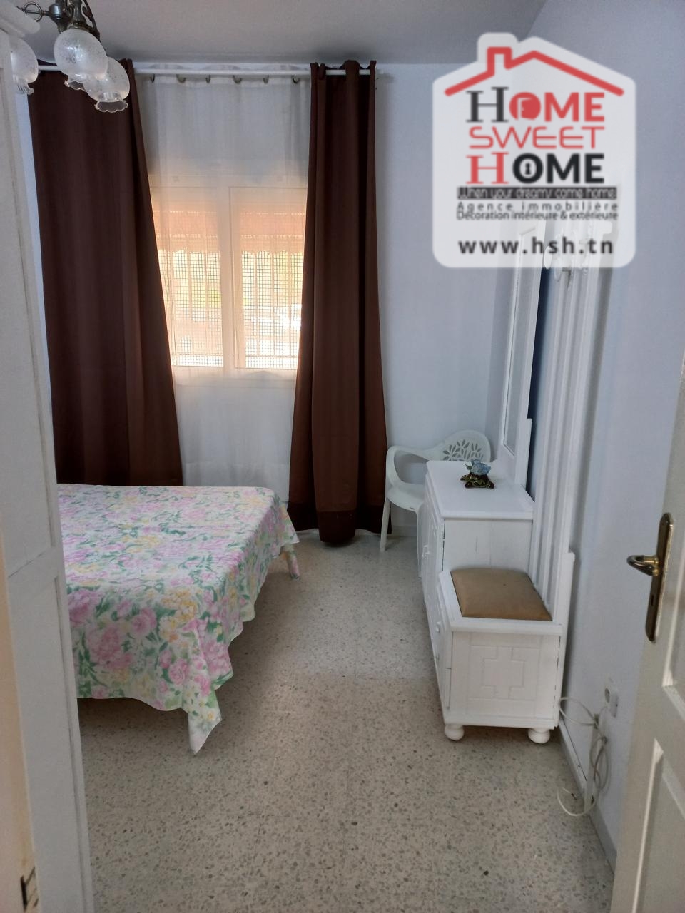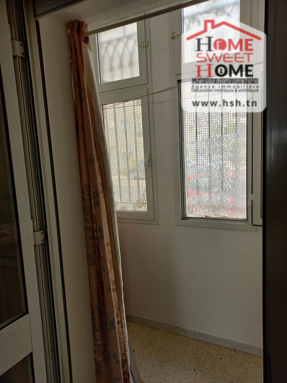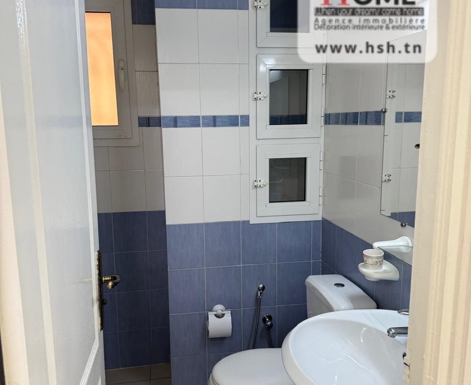 شقة S2 مرتفعة تقع في RDC في سكن بعين زغوان الشمالية. إنه يتكون من صالون ومطبخ مجهز مع séchoir و2 غرفتين وصالون حمام.