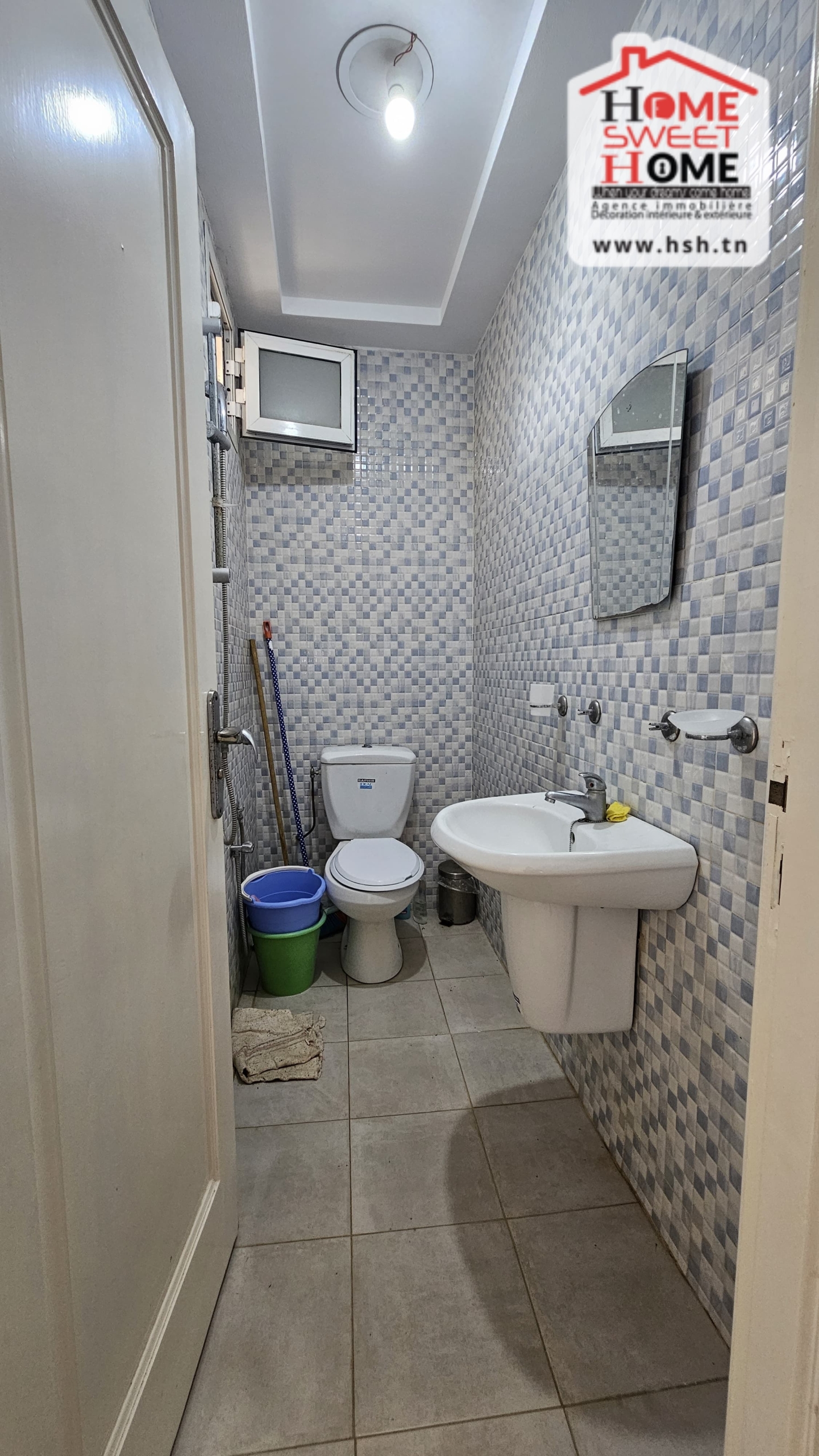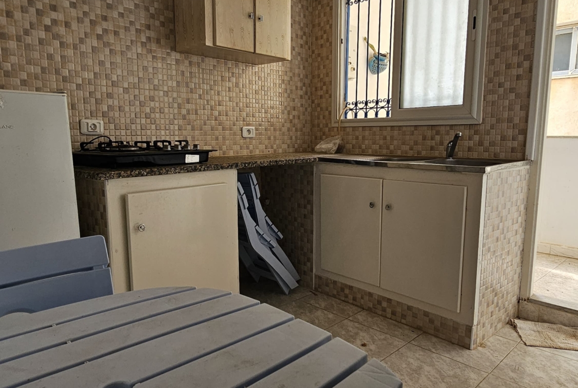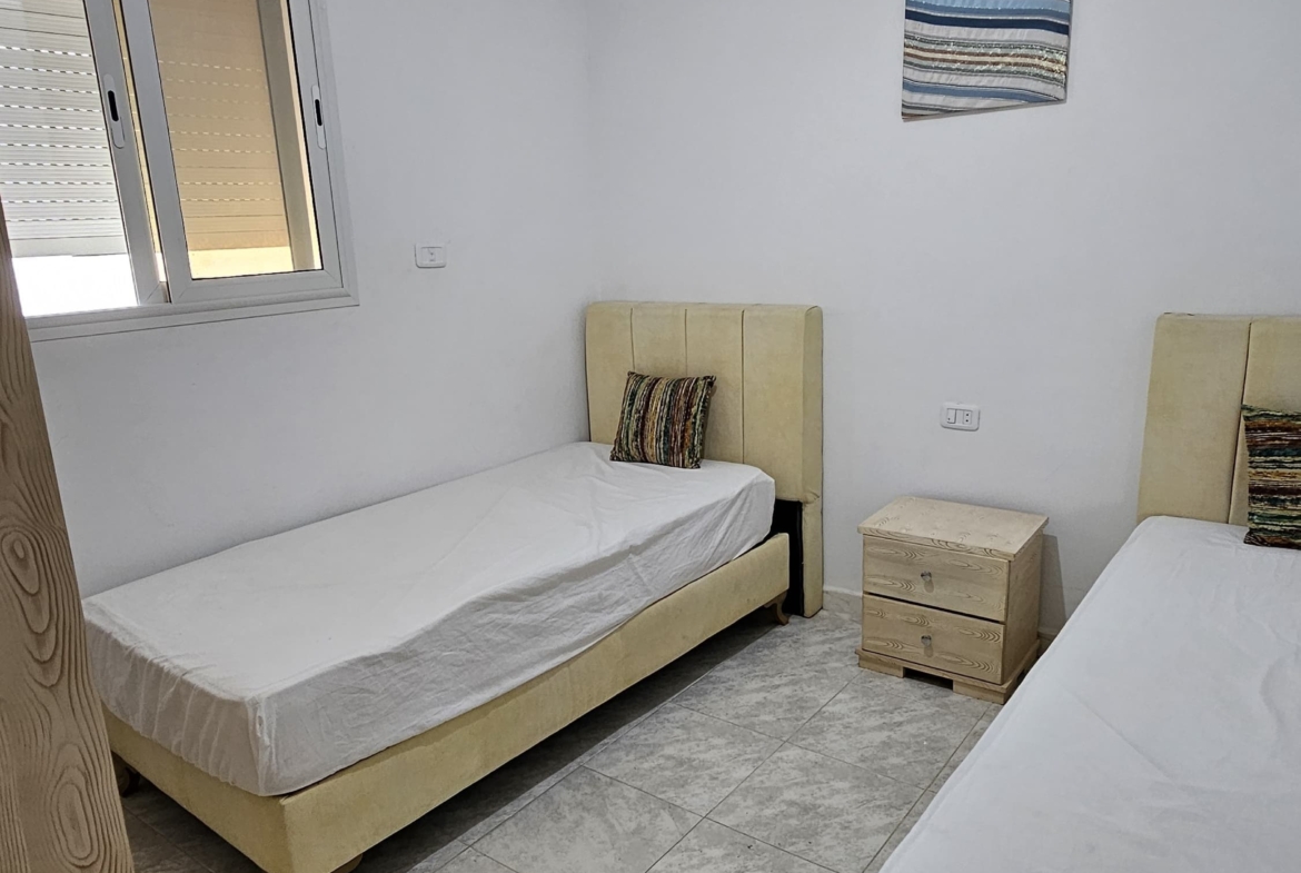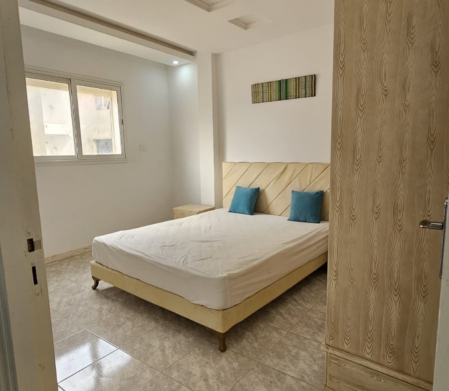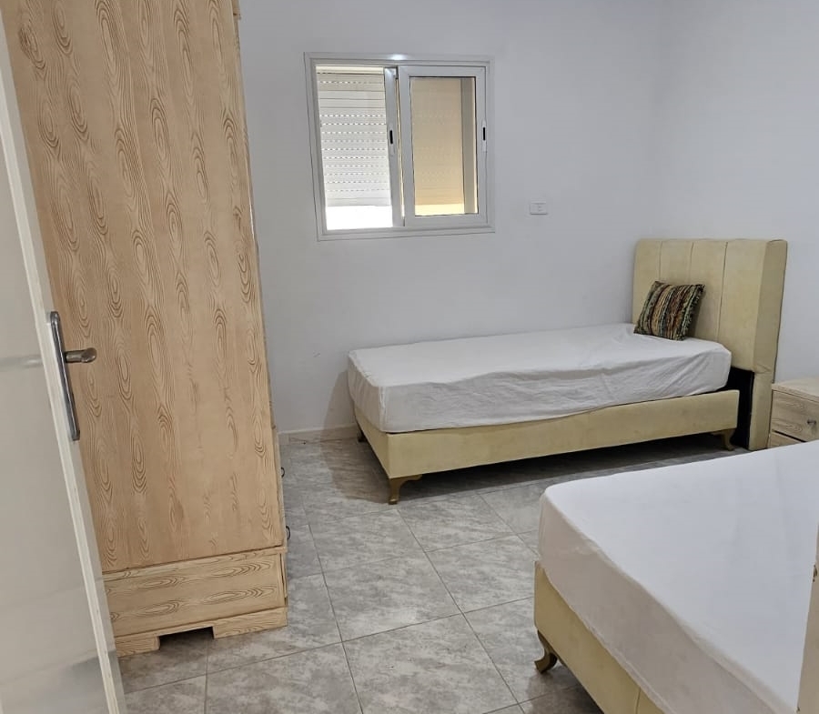شقة تقع في الطابق الأول من مكان الإقامة في جنين المنصورة، قليبية. في المدخل، ستجد صالونًا ومطبخًا مع مجموعة من الغرف وغرفتين وغرفة مياه.