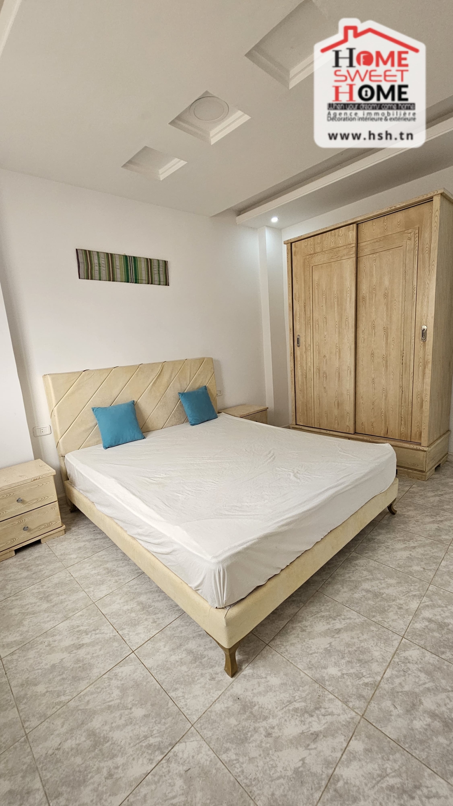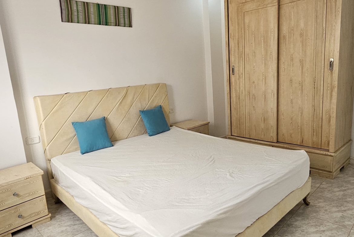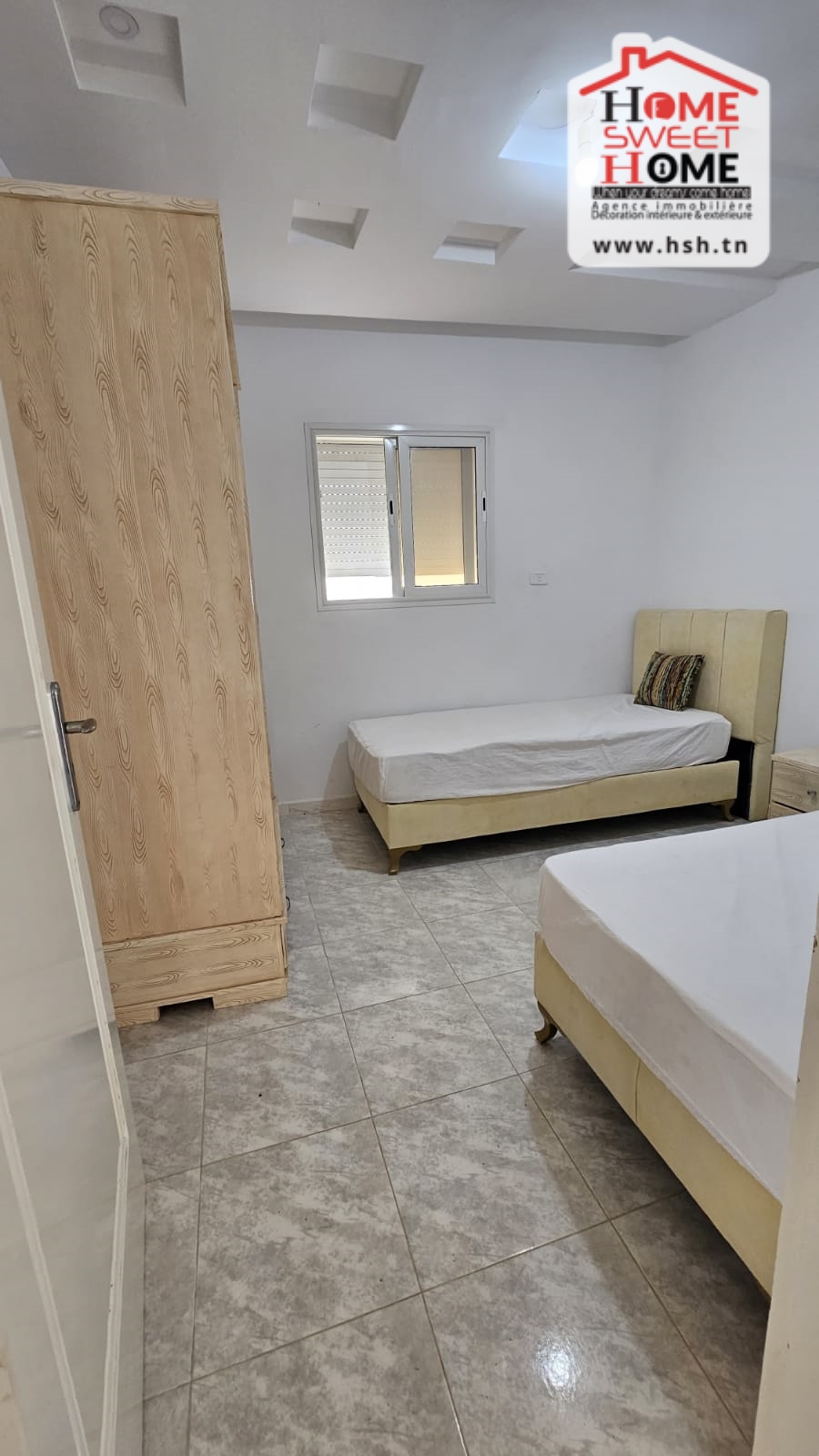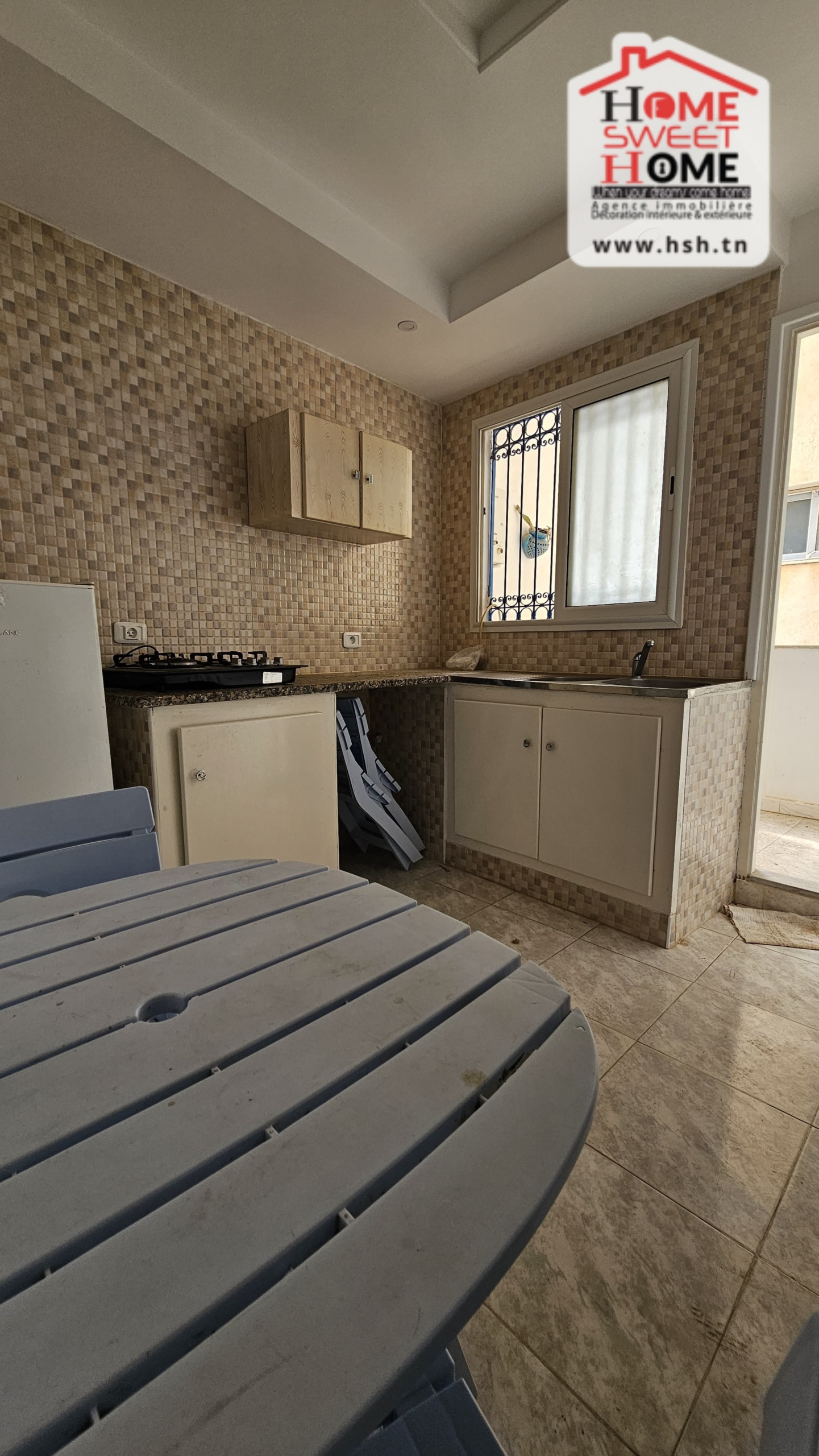 شقة تقع في الطابق الأول من مكان الإقامة في جنين المنصورة، قليبية. في المدخل، ستجد صالونًا ومطبخًا مع مجموعة من الغرف وغرفتين وغرفة مياه.