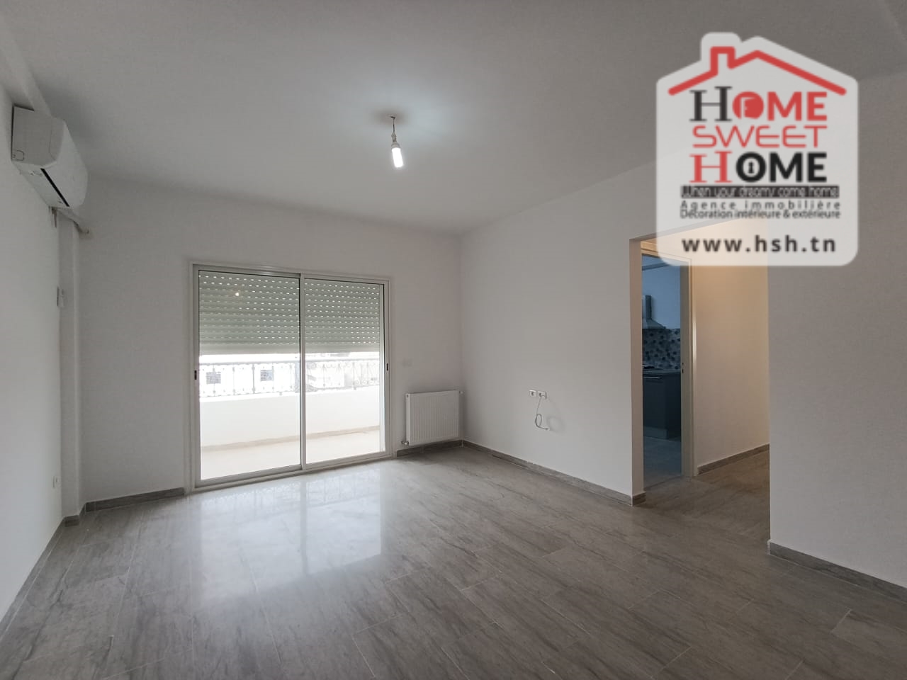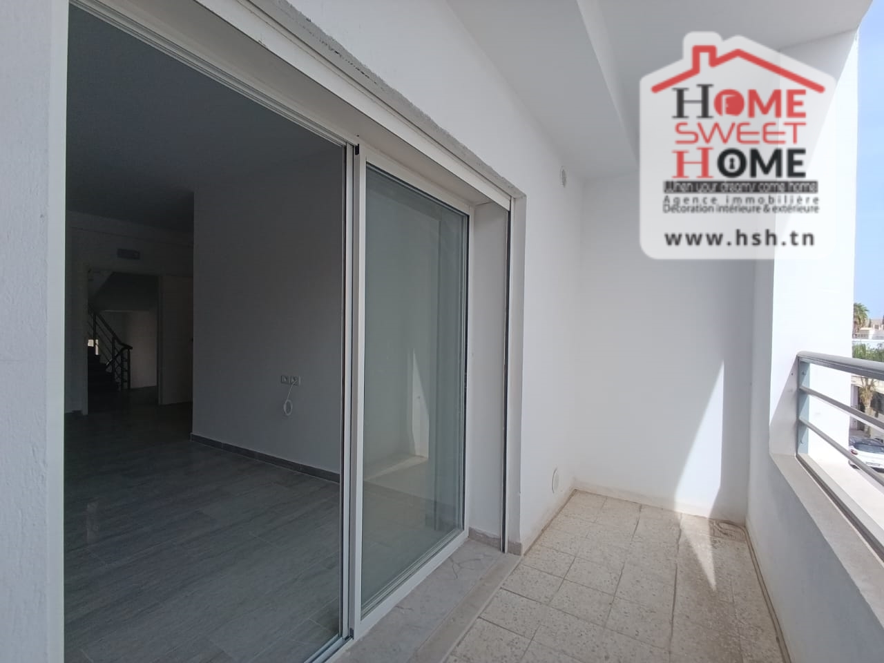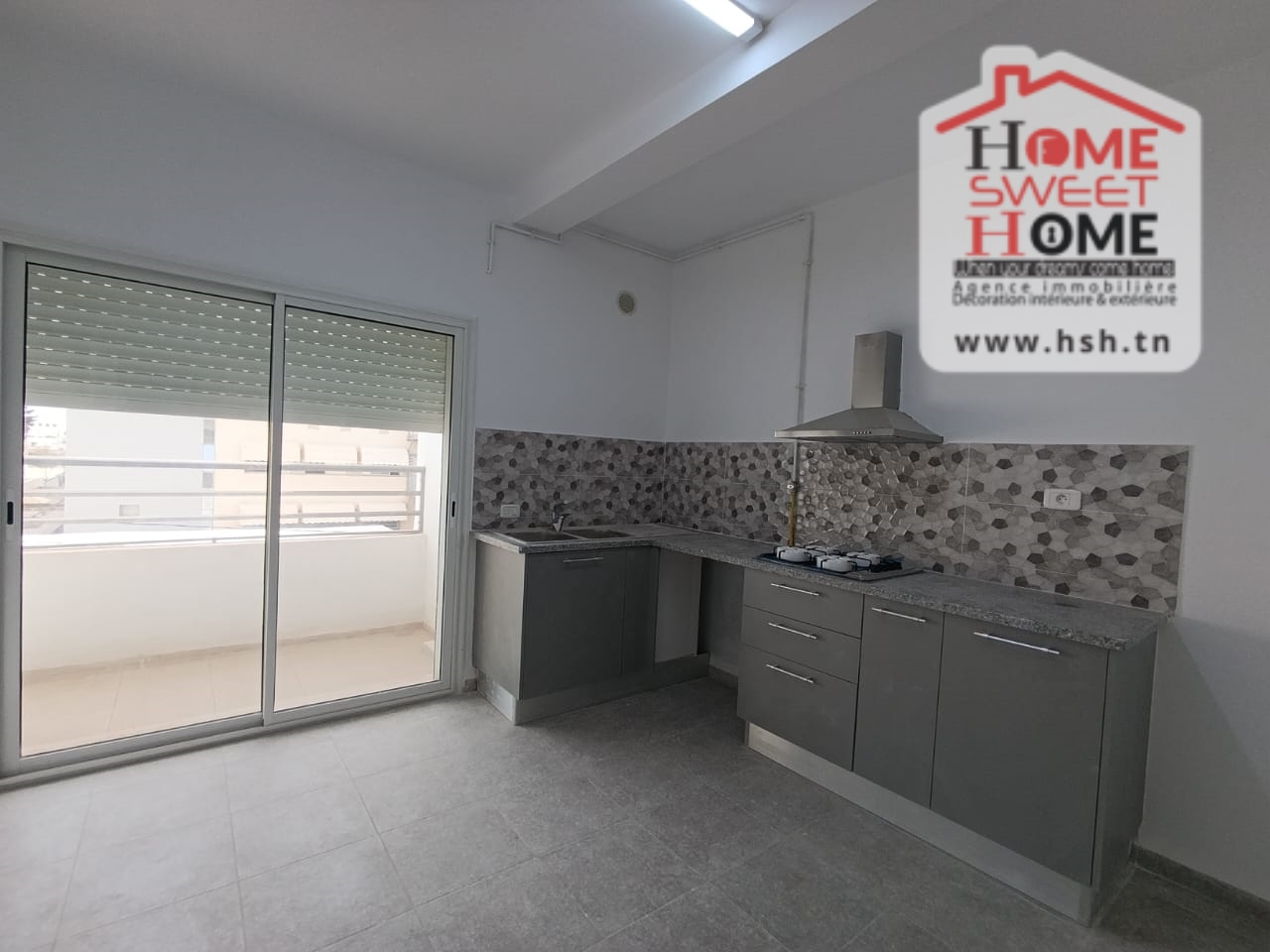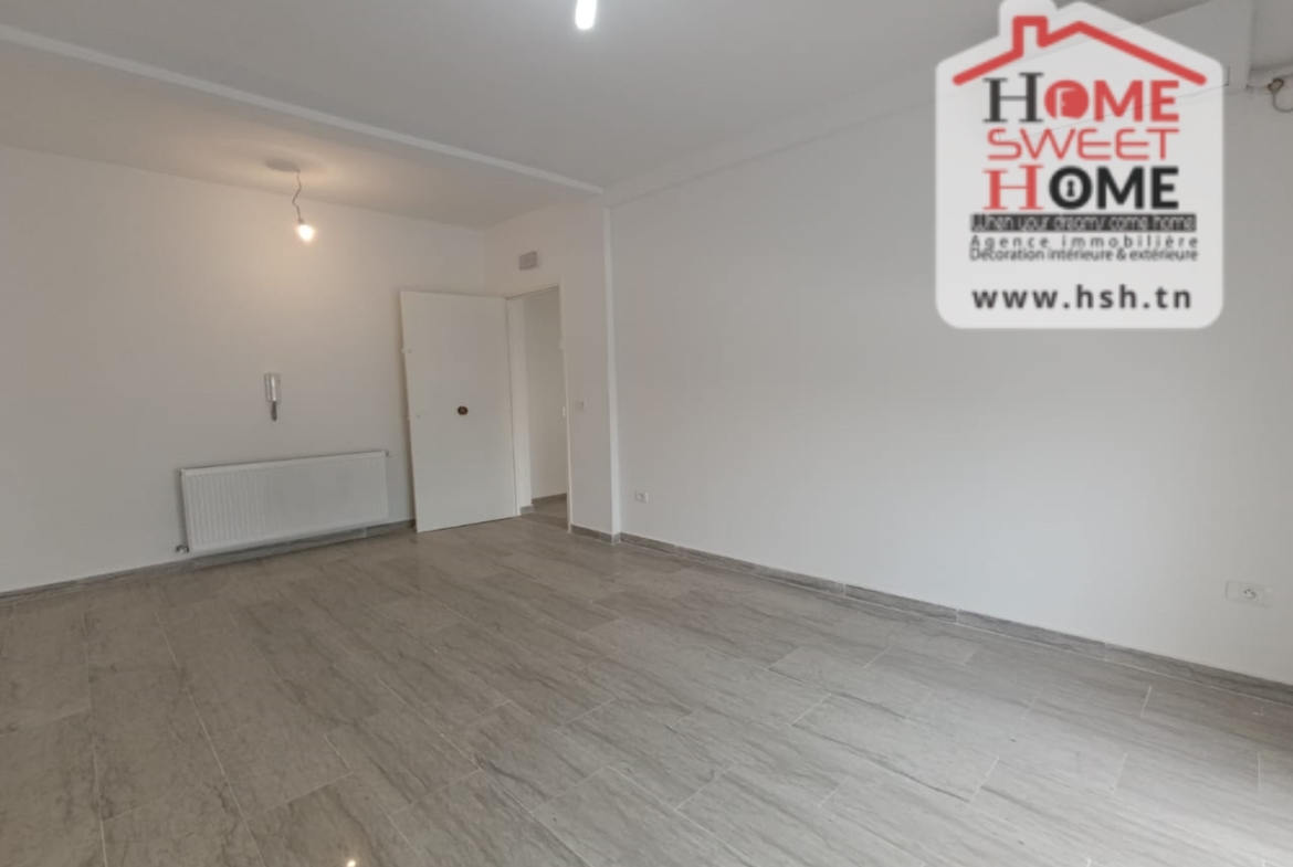 Un Appart au 2éme étage site dans un immeuble privé à Sidi Daoud, La Marsa. في المدخل، في صالون مع شرفة، ومطبخ مجهز مع الراحة، وغرفة في الأريكة وغرفة حمام. في الخارج، على طريق السيارة.