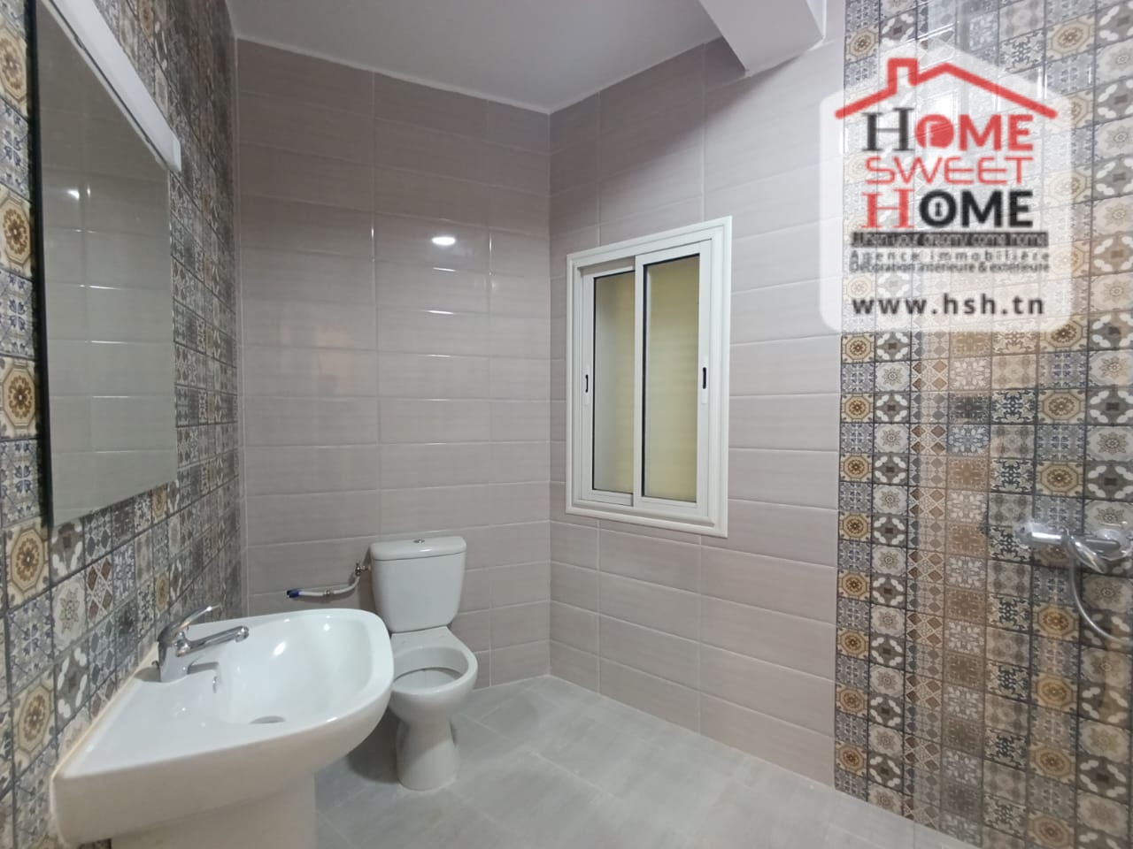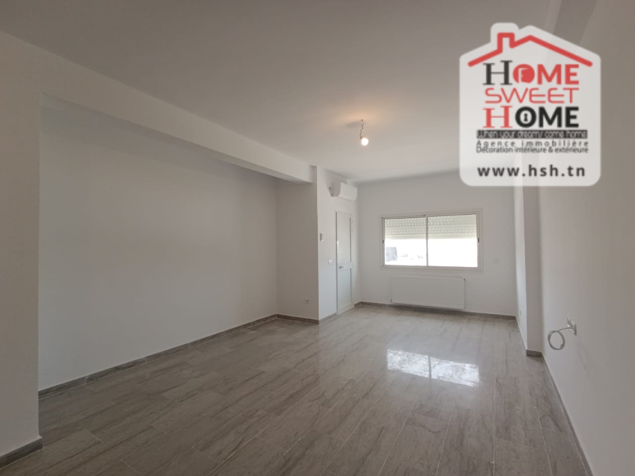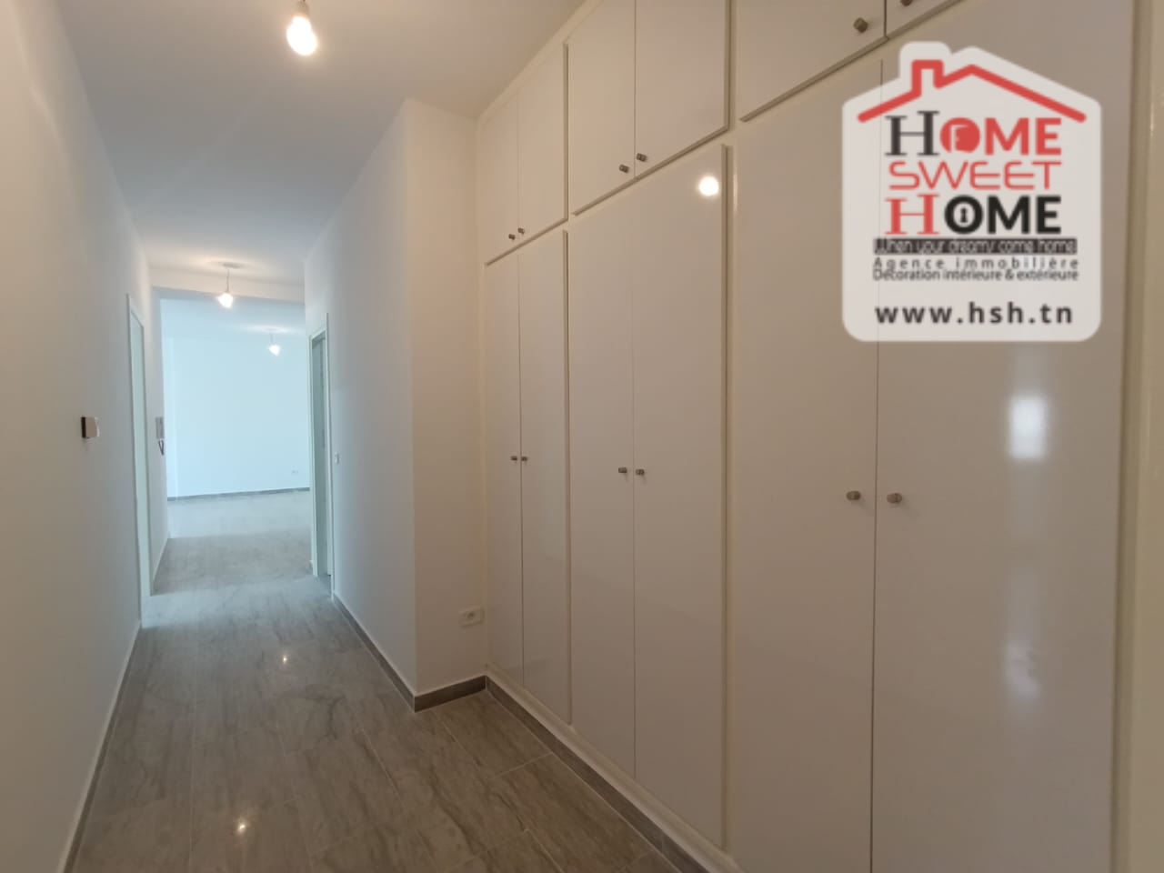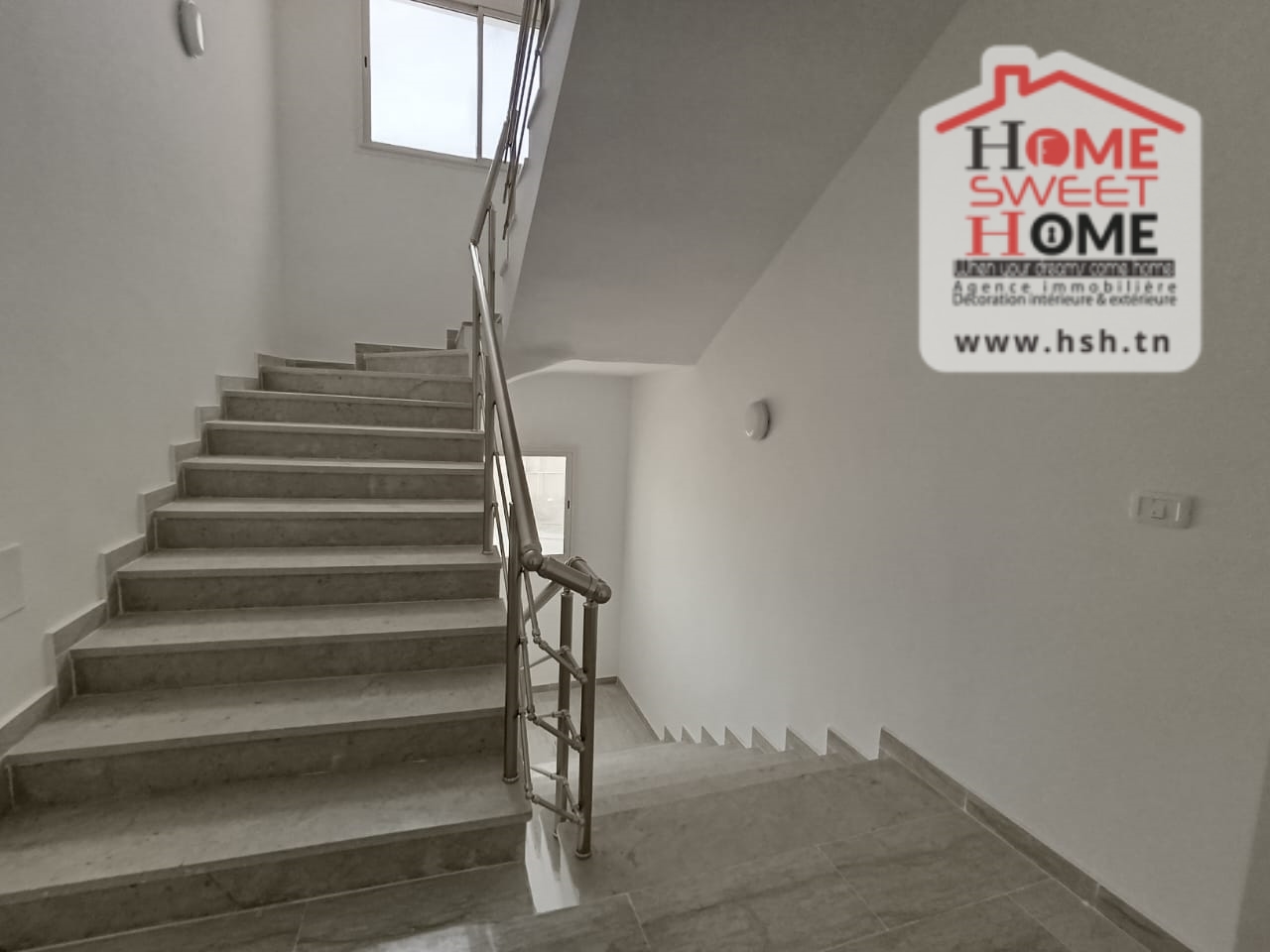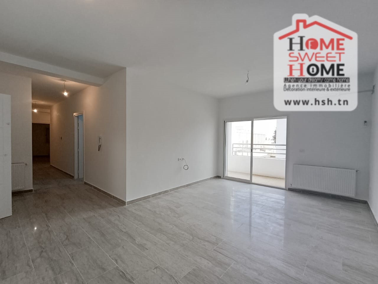 Un Appart au 2éme étage site dans un immeuble privé à Sidi Daoud, La Marsa. في المدخل، في صالون مع شرفة، ومطبخ مجهز مع الراحة، وغرفة في الأريكة وغرفة حمام. في الخارج، على طريق السيارة.