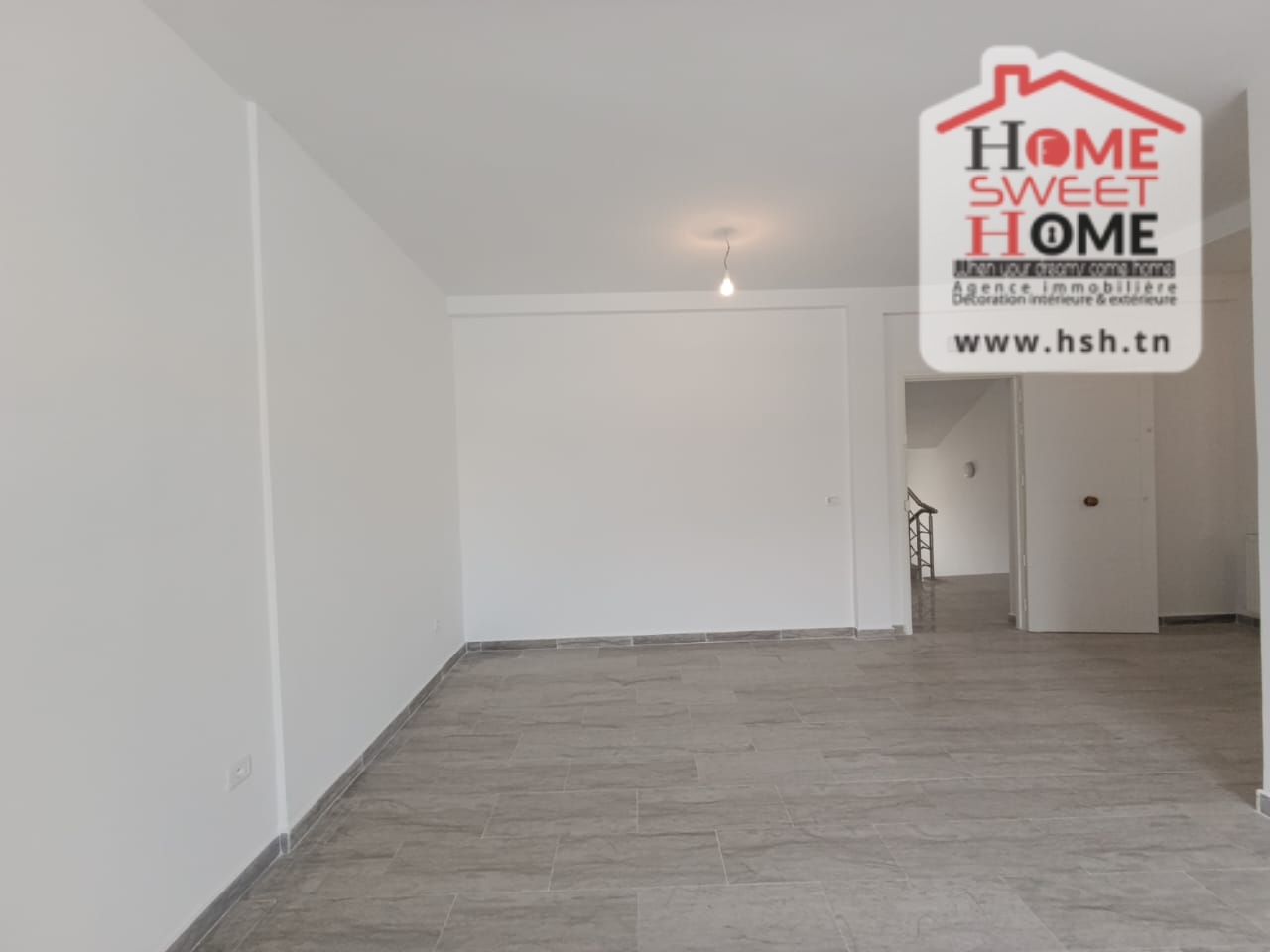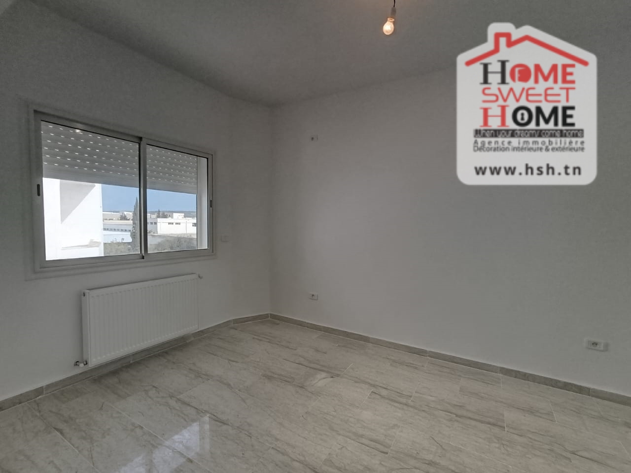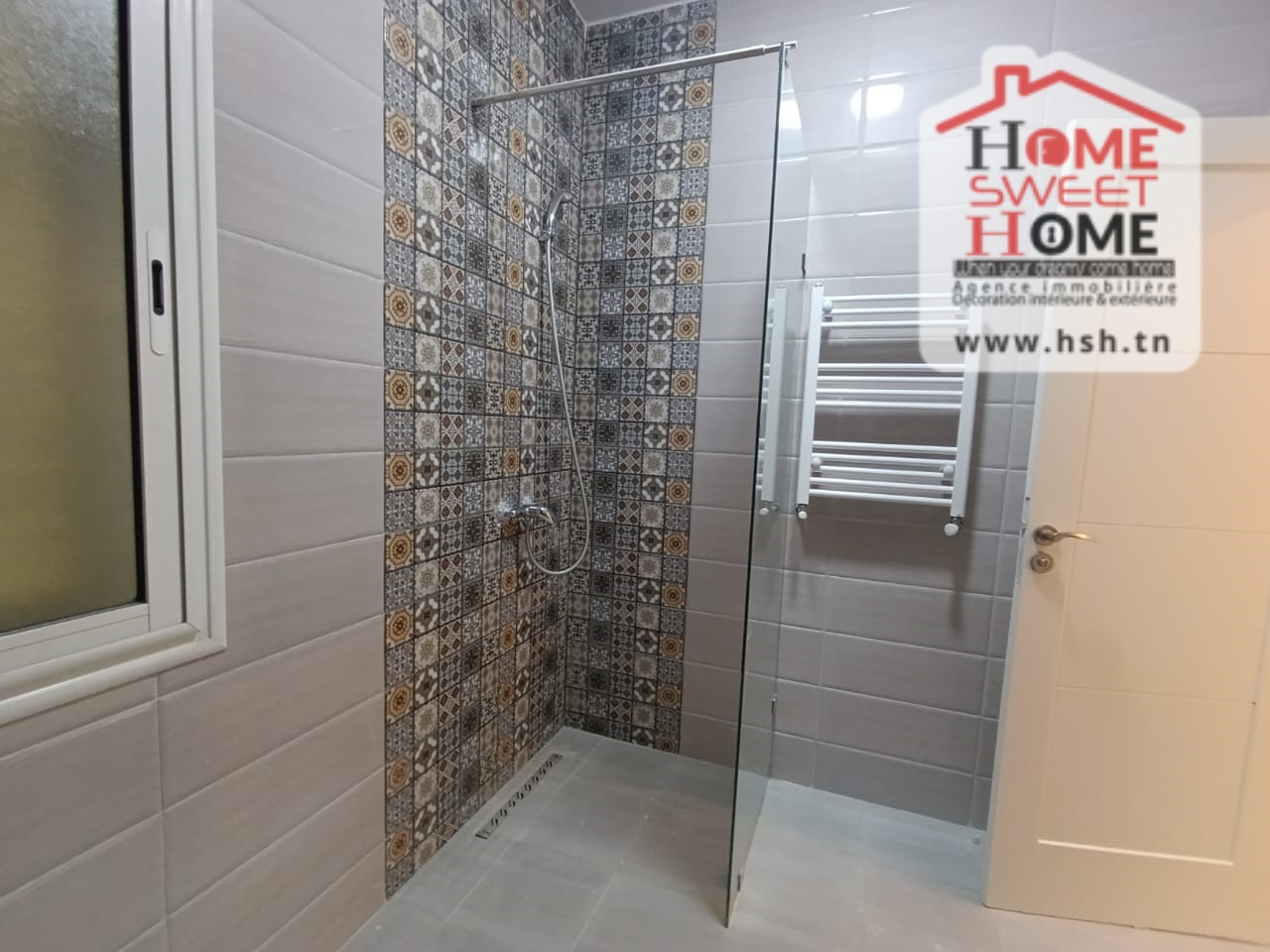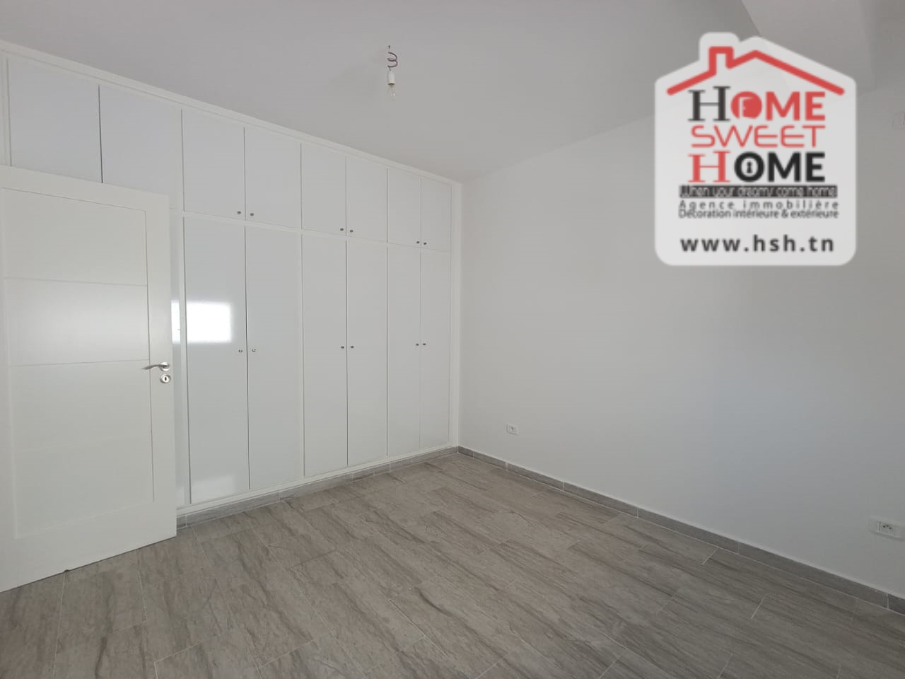 Un Appart au 2éme étage site dans un immeuble privé à Sidi Daoud, La Marsa. في المدخل، في صالون مع شرفة، ومطبخ مجهز مع الراحة، وغرفة في الأريكة وغرفة حمام. في الخارج، على طريق السيارة.
