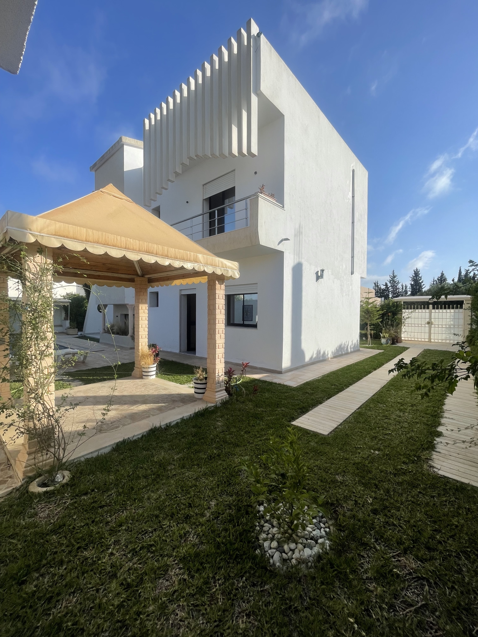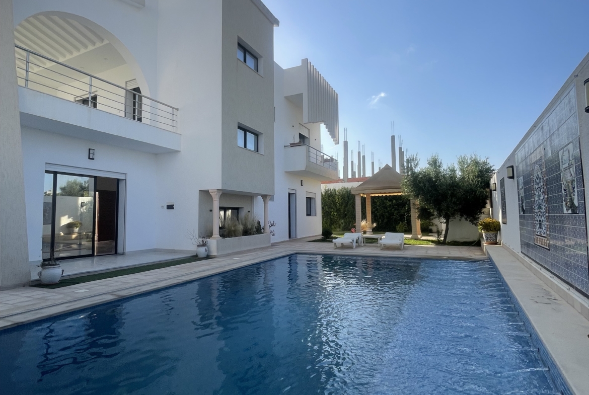 فيلا دوبلكس بالحمامات جنوب سيدي الحمامات على بعد 50 متر من الطريق الرئيسي حي هادئ وهادئ قريب من جميع السلع الضرورية لصيدلية المسجد ومجلة المسجد…..
