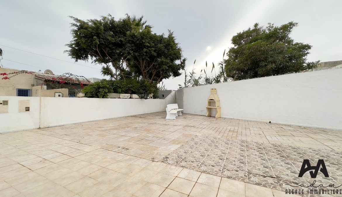 بنغل S+3 مع تراس جميل بمساحة 160 مترًا مربعًا، يقع بين فندق Lido وفندق "Riadh" ويمكن الوصول إليه مباشرة من شارع الدكتور محمد السويسي، في نابل على بعد بضعة أمتار من الشاطئ وعلى مقربة من جميع السلع.