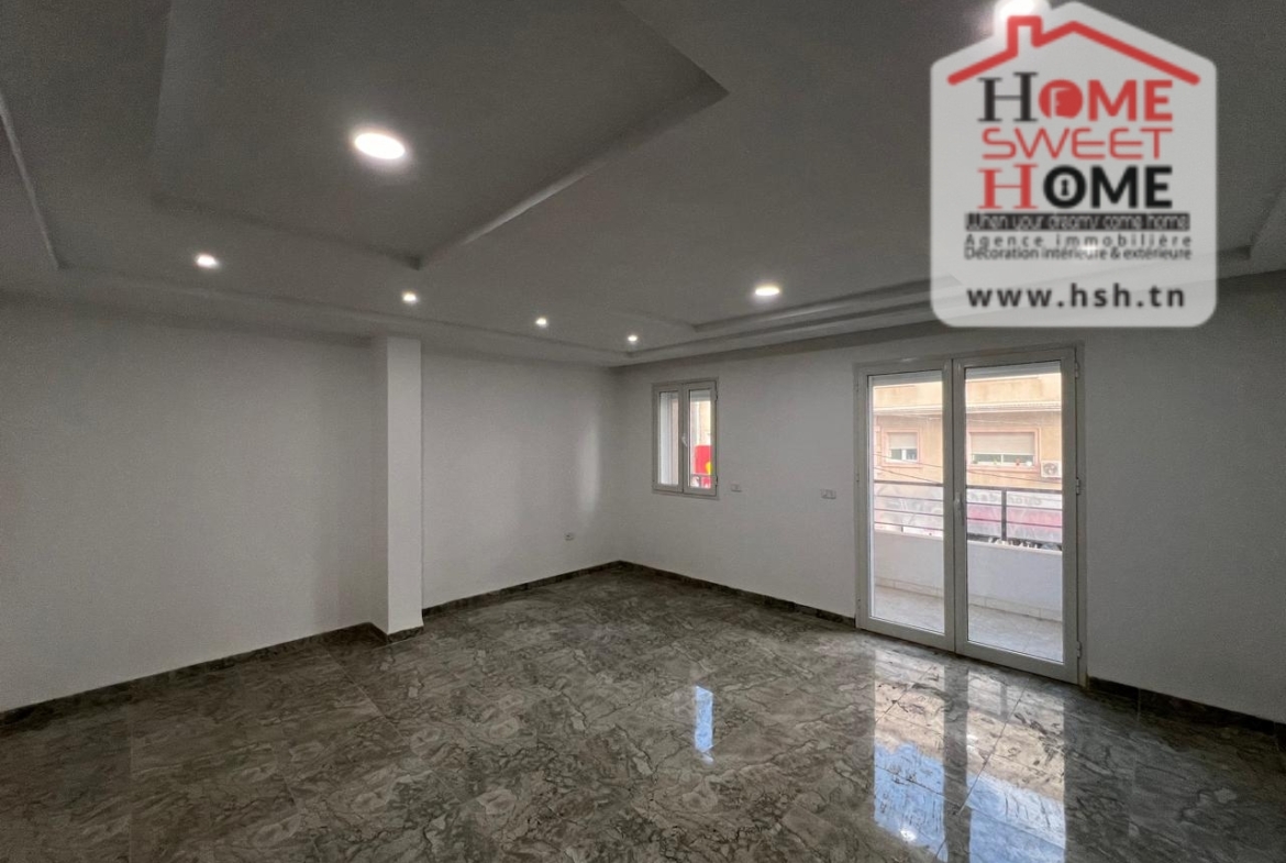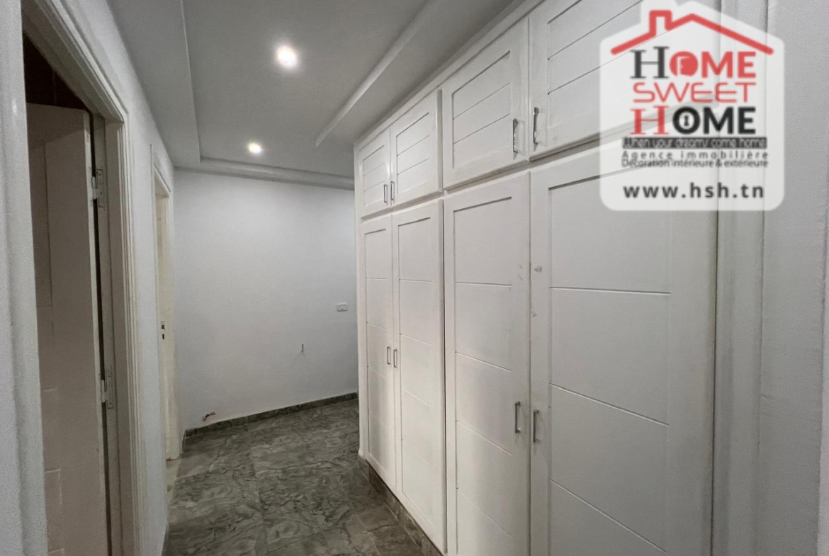 مكتب في موقعه الأول في العوينة. يتكون من مساحة مفتوحة ومطبخ صغير وخزانة مياه.