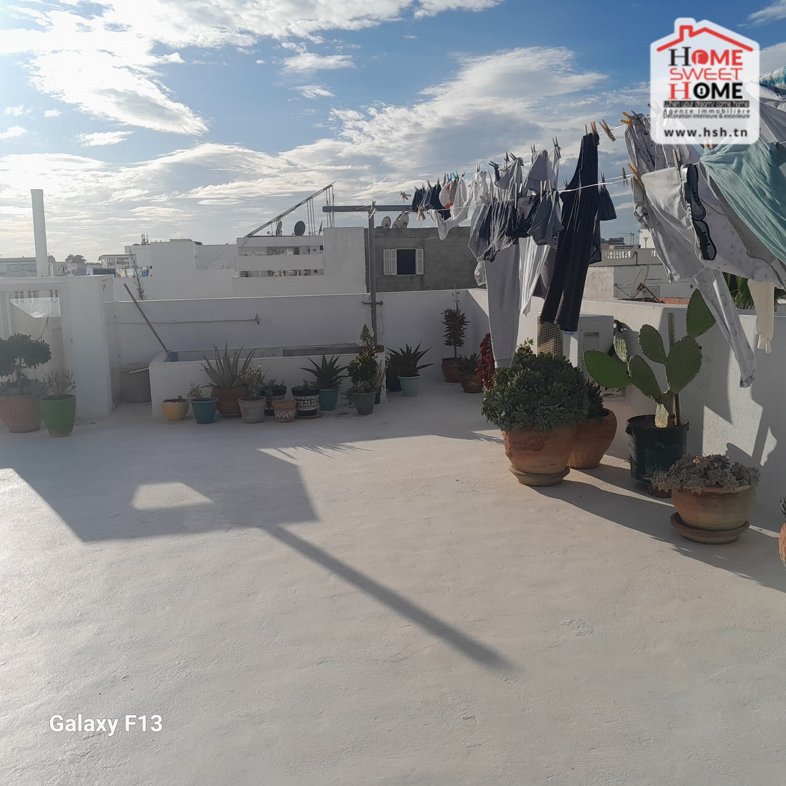 قطعة من الفيلا تقع في شقة في حي جميل في مدينة حمودة معالي، الكرم. مدخل، في صالون، مطبخ مجهز، قاعة مياه، 3 غرف، قاعة حمام وشرفة كبيرة مع منطقة استراحة.