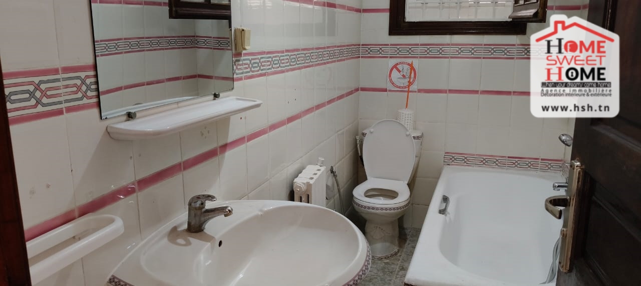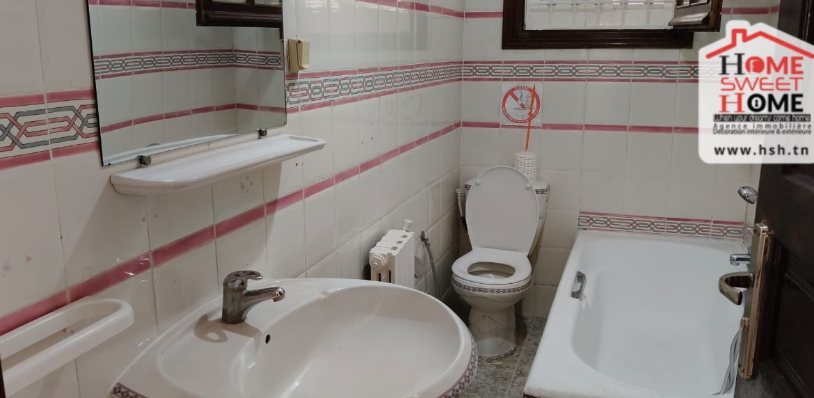 قطعة من الفيلا المستقلة تقع في حي سكني بقرطاج ديرمش، على بعد 100 متر من الشاطئ عند المدخل، وصالون واسع، ومطبخ مجهز، وثلاث غرف وصالة حمام. في الخارج، شرفة كبيرة وممر يمكنهما استقبال سيارتين.