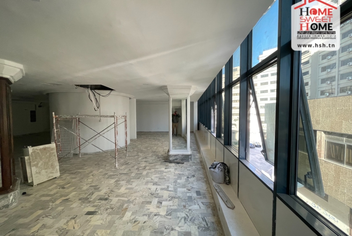 مساحة محلية بمساحة 450 مترًا مربعًا مثالية للتأمين، البنك، الشركة، مركز الاتصال، المطعم، صالون ... موقع في مكان استراتيجي في قلب وسط المدينة، تونس. يوجد في المنطقة مساحة مفتوحة كبيرة وجزء إداري وكتلة صحية.