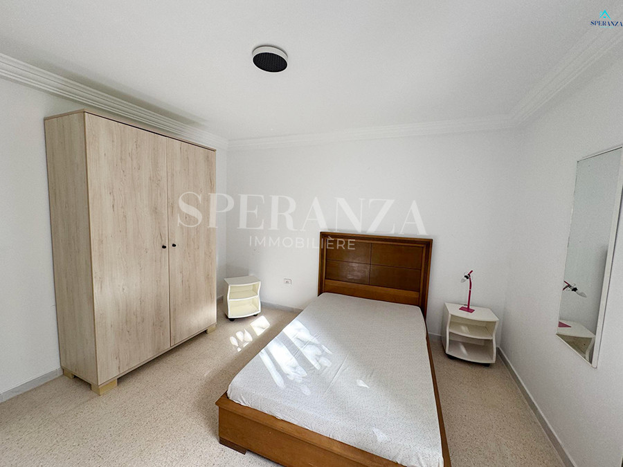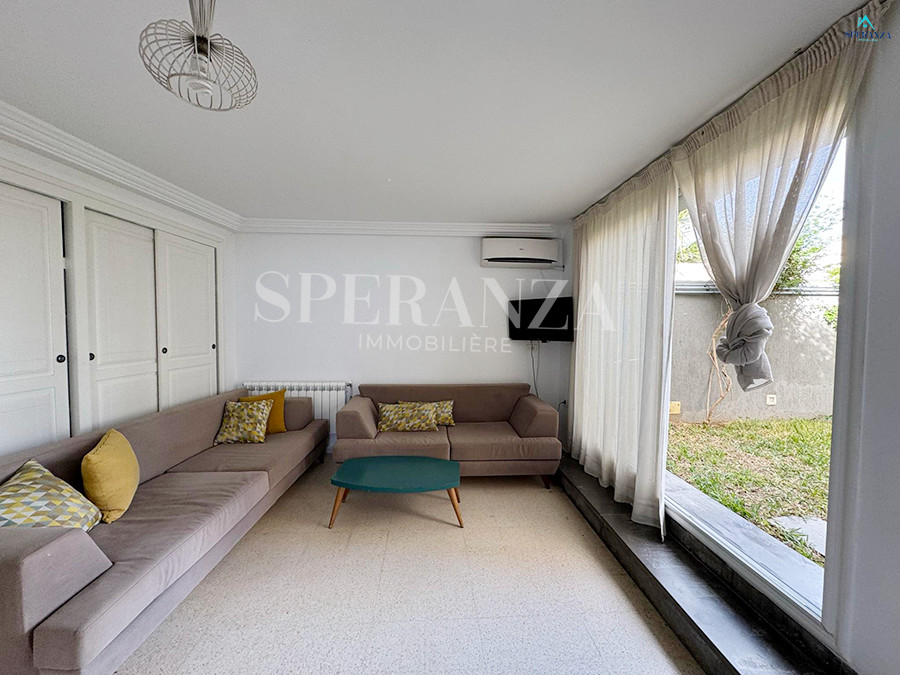 تقترح شركة Speranza immobilière Hammamet موقعًا سنويًا Cet appartement meublée Au RDC située à Nabeul dans une résidence الهادئ. المدخل الرئيسي دون جاردان جماعي . يتكون الجزء اليومي من صالون مضيء وواسع، ومطبخ صغير مجهز بالعديد من عناصر المجموعة. La Partie Nuit Dispos: une chambre à الأريكة، une salle d'eau.