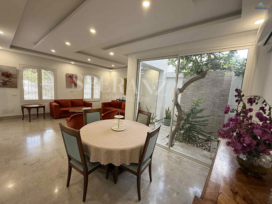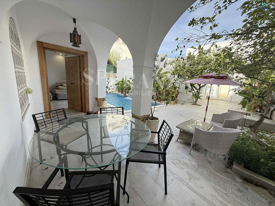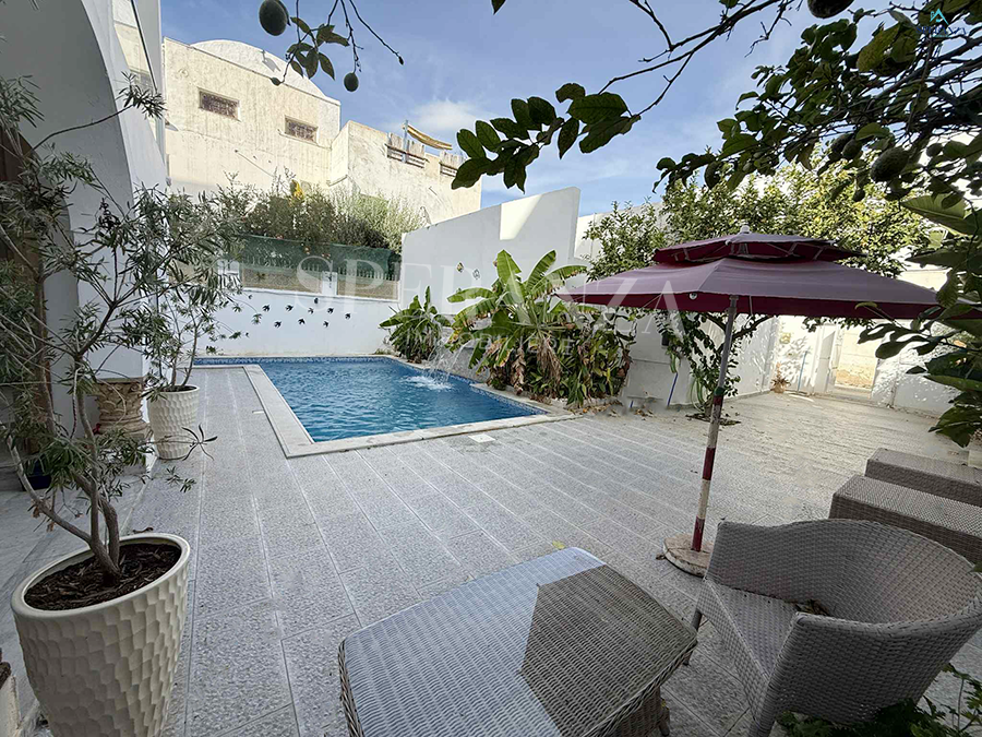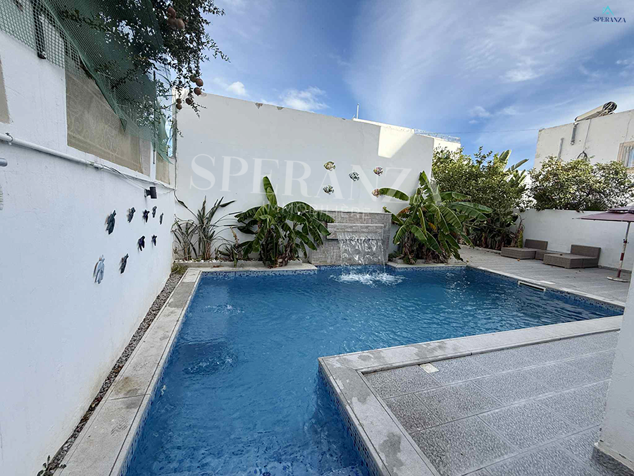 Speranza Immobilière Hammamet تقترح موقعًا في هذه الفيلا الواقعة في وسط مدينة الحمامات. يفتح المدخل الرئيسي على حديقة خضراء ومسبح، مما يخلق جوًا مريحًا ومريحًا. في RDC، يمكنك العثور على صالون مضيء واستراحة ومساحة لإدارة المساحة. المطبخ متكامل مع عناصر التخزين. تشتمل هذه المستويات أيضًا على قاعة مياه.مصعد من الدرجة الأولى، والذي ينشئ مساحة ليلية مكونة من غرفتين وغرفة مياه. يوفر الطابقان غرفة وصالون مياه وشرفة، مما يجعلها مثالية للاستفادة من الهواء الطلق. بالإضافة إلى ذلك، يتم تضمين قارب سيارة.