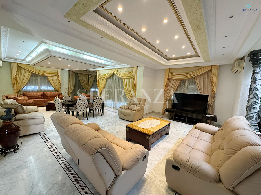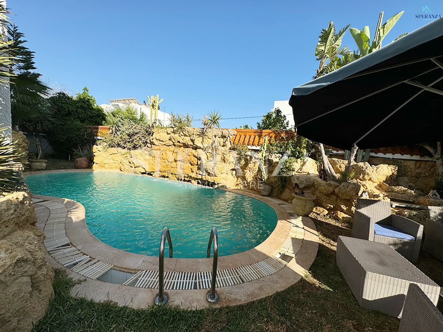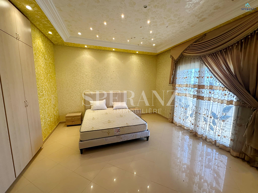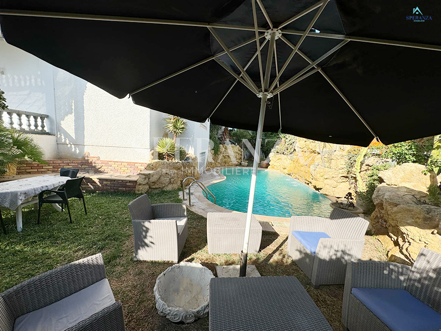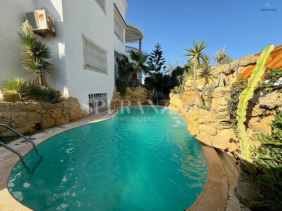 Speranza immobilière Hammamet vousقترح à la location Annuelle فيلا تقع في نابل (سيدي ماهرسي). المدخل الرئيسي يتكون من غاز جادين مع حوض سباحة . يتألف مكان الإقامة من صالون واسع ومضيء، وغرفة للحضانة، وغرفة معيشة مغربية، وغرفة للأريكة، ومكتب، وقاعة مياه، ومطبخ واسع مجهز بشرفات. في الطابق الأول، يمكنك العثور على صالون وجناح للوالدين وغرفة حمام وشرفة وغرفتين مع أريكة وغرفة غسيل وغرفة مياه. توفر الطابق الثاني مطبخًا وشرفة كبيرة تطل على البحر. المرآب.