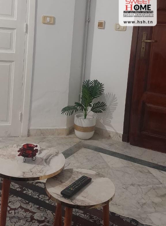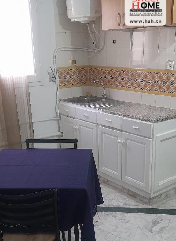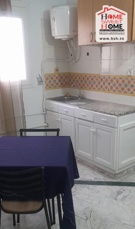 Un appart S0 meublé au 8éme étage site dans une résidence avec ascenseur à Ennasr 2. A L'entrée، ستجد مطبخًا صغيرًا مفتوحًا في صالون وخزانة مياه.