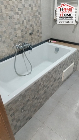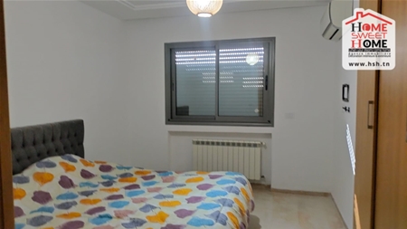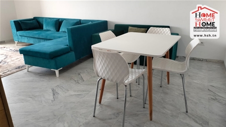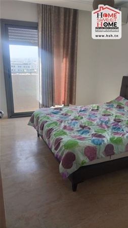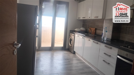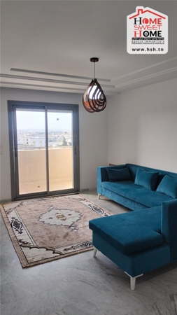 شقة S2 مفروشة في موقع 4ème étage dans une résidence de haut stand à l'Aouina. في المدخل، في صالون به شرفة، ومطبخ مجهز مع ذوقك، وغرفتين للأريكة، وغرفة للحمام. Sur une place de parking au sous-sol.