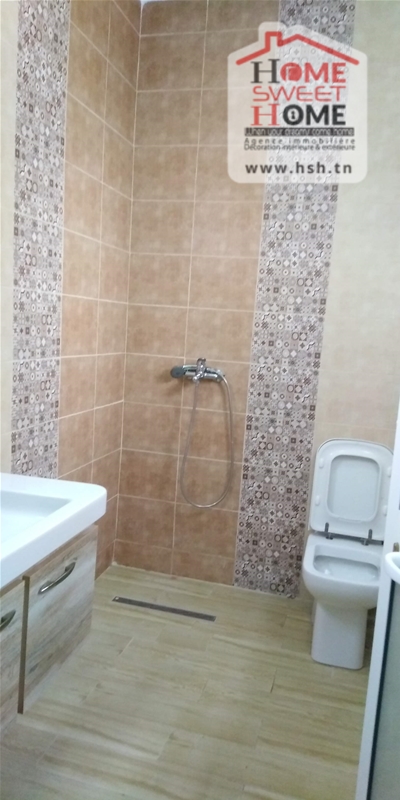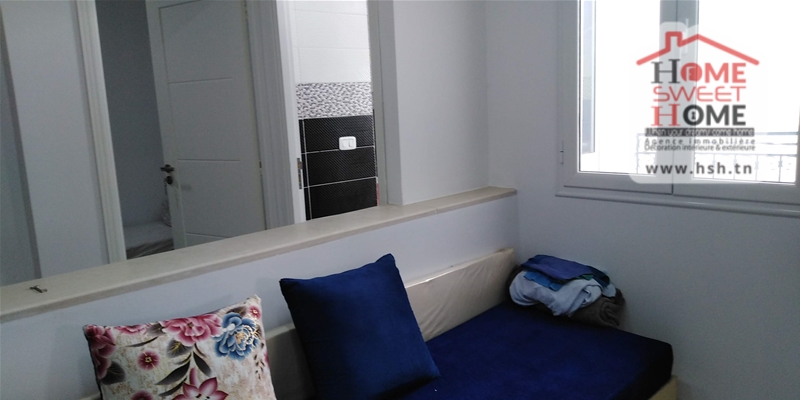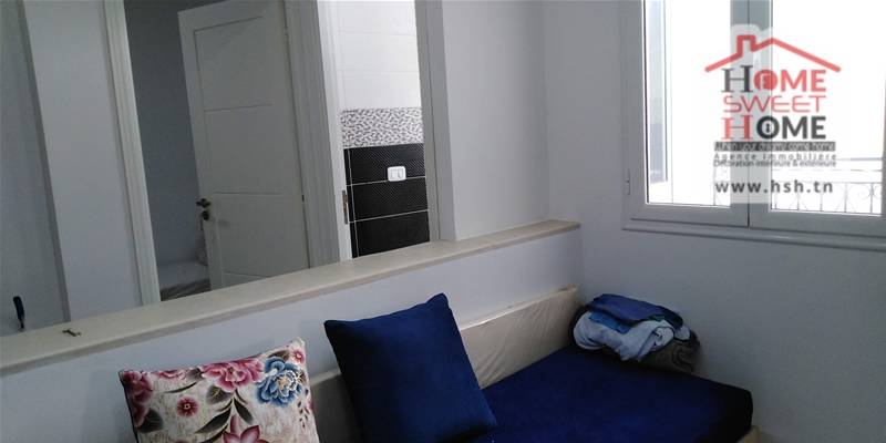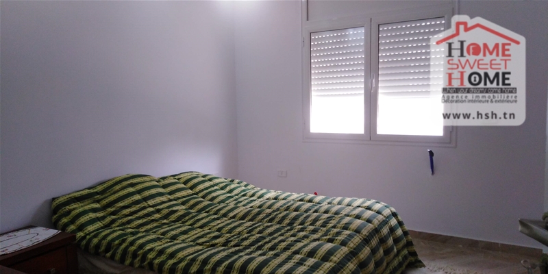 شقة في الطابق الأول تقع في حي سكني بقرية قمرت. في قاعة دخول، وصالون، ومطبخ مع طعام شهي، وغرفتين، وغرفة حمام.