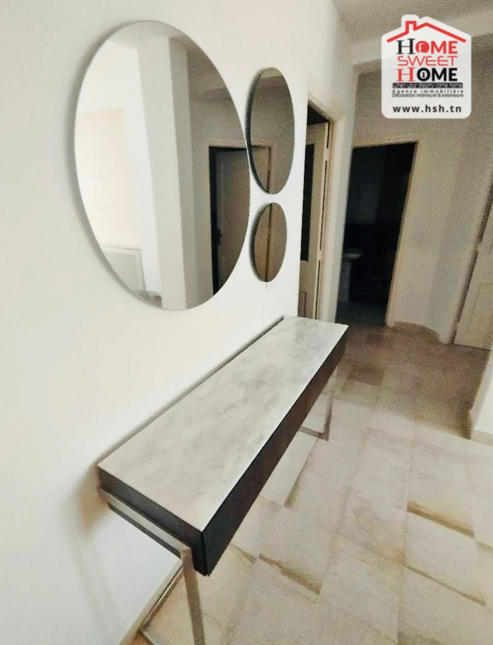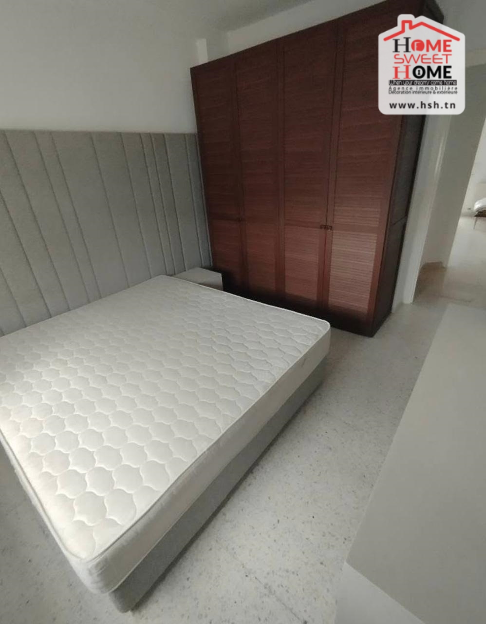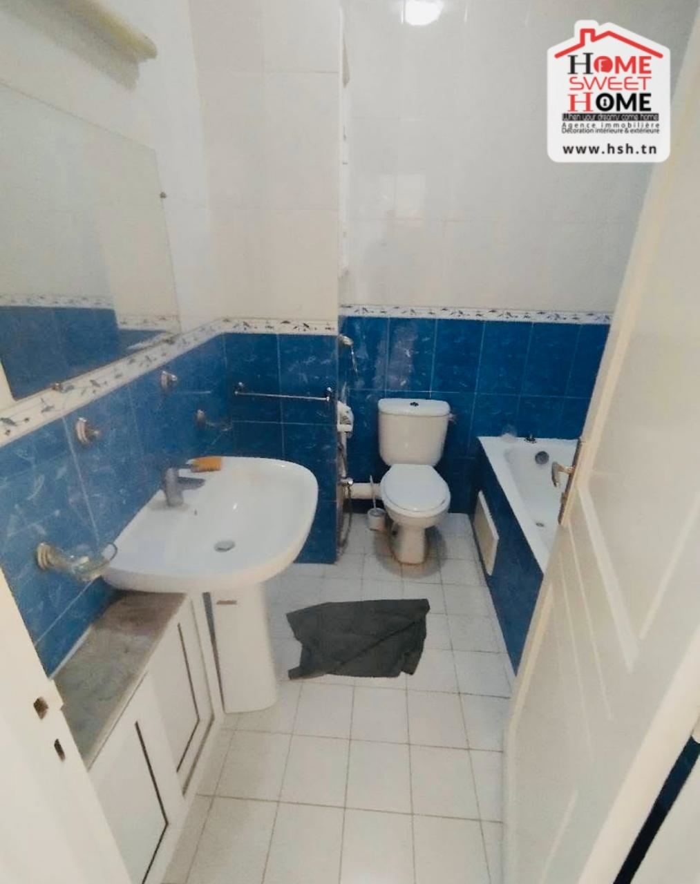 شقة S2 شبه مفروشة في 6 غرف تقع في مكان إقامة مع صاعد مزدوج في Jardins de L'aouina. في المدخل، ستجد صالونًا مع شرفة، ومطبخًا مع طعام شهي، وغرفتين للأريكة، وغرفة للحمام.