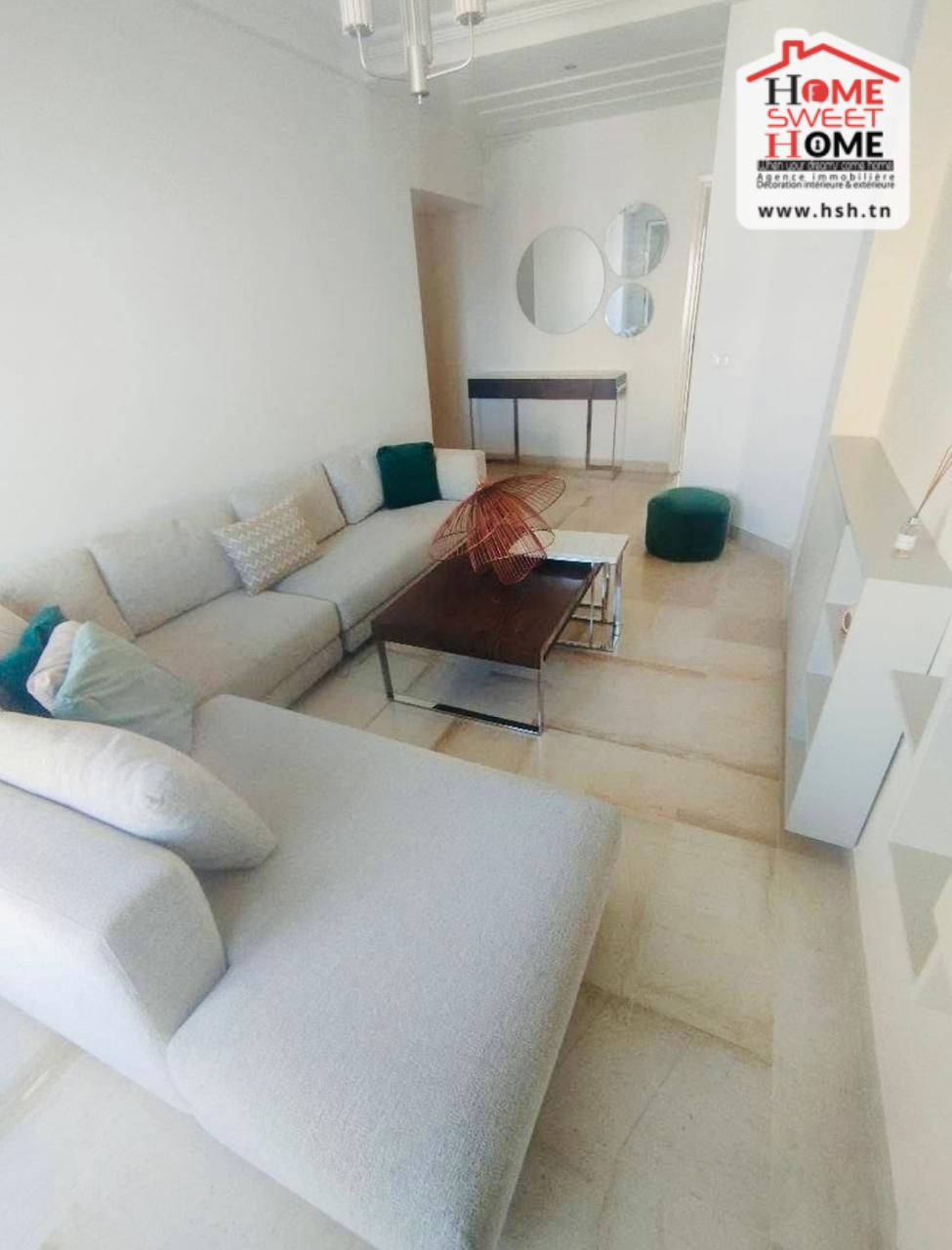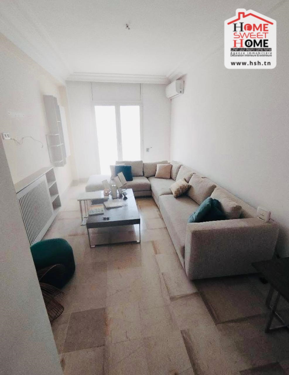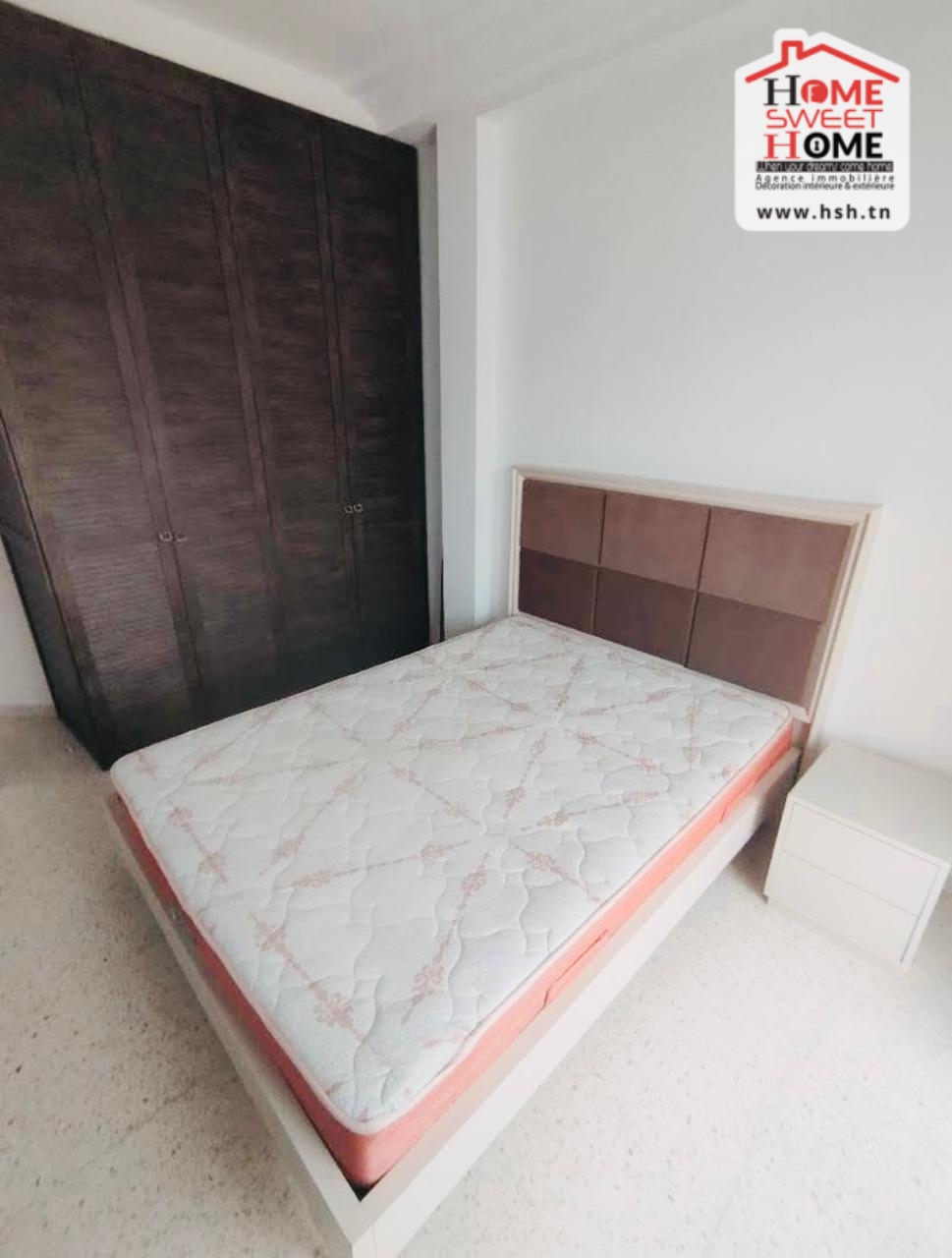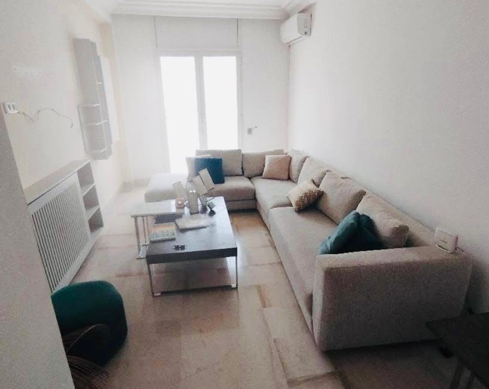 شقة S2 شبه مفروشة في 6 غرف تقع في مكان إقامة مع صاعد مزدوج في Jardins de L'aouina. في المدخل، ستجد صالونًا مع شرفة، ومطبخًا مع طعام شهي، وغرفتين للأريكة، وغرفة للحمام.