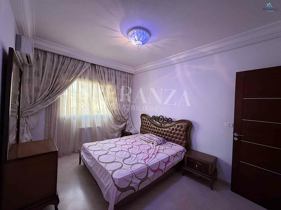 Speranza immobilière Hammamet تقترح عليك شقة للبيع في موقع متميز في الحمامات الشمالية في مكان هادئ وآمن. L'entrée donne sur une salon lumineuse، une مطبخ وكالة est medénagée par les élements de rangements nécessaires و une salle d'eu pour les invités. تحتوي الحجرة في الليل على ثلاث غرف أريكة وغرفة حمام. مع تراس ومكان لوقوف السيارات.