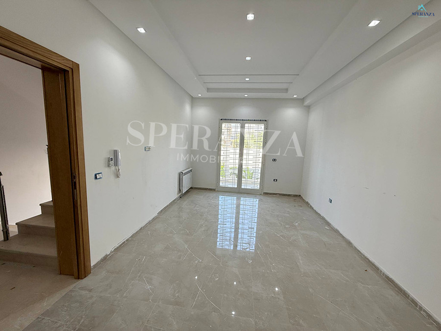 Speranza immobilière Hammamet تقدم لك عرضًا في Cet appartement site à Hammamet nord، au RDC proche de toutes les commodités. يتم تشكيل الجزء اليومي من صالون مضيء، ومطبخ منسق بمساحات واسعة، وغرفة مياه. يتم تشكيل المقصورة من غرفتين على الأريكة. Ainsi qu'un Terrasse et un jardin Collectif. (ملحوظة: مكان واحد لوقوف السيارات وإضافي)