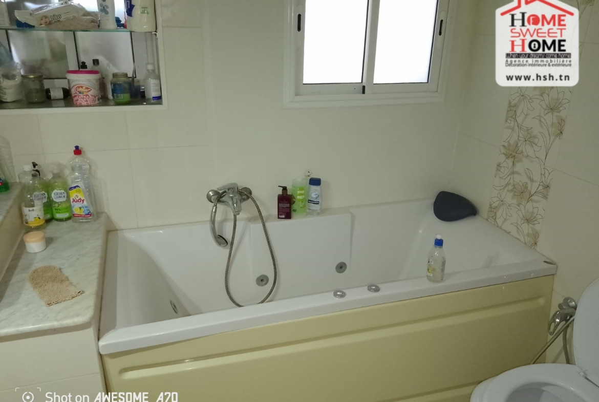 فيلا ساحرة على مساحة 250 مترًا مربعًا تقع في حي سكني بقرية قمرت. Au RDC، في صالون كبير، غرفة طعام، مطبخ مجهز وخزانة مياه للمدعوين. A L'étage، On a 3 chambres et une salle de bain. A L'extérieur، على شرفة وحديقة ومرآب.